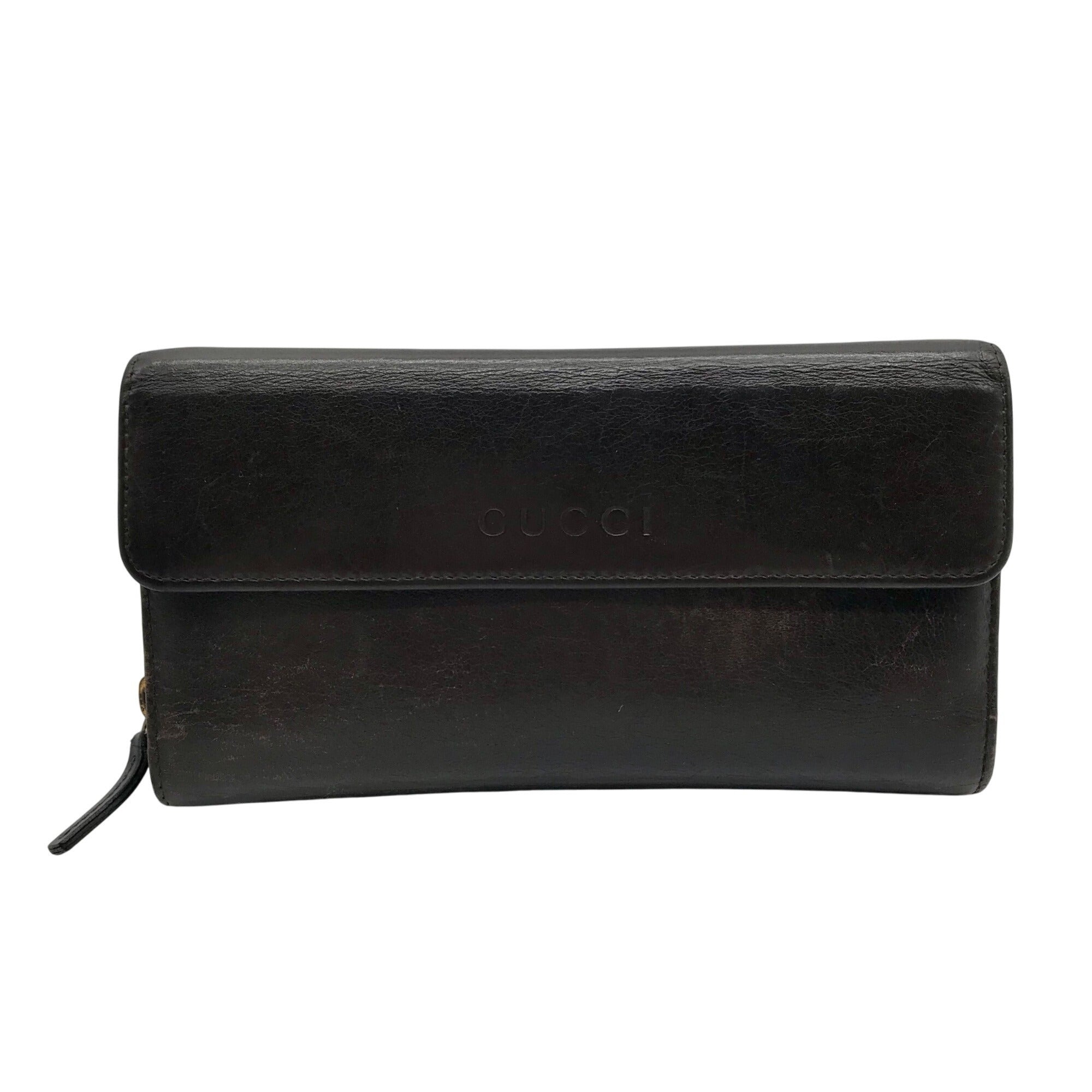 Gucci Dark Brown Leather Long Tri-Fold Wallet