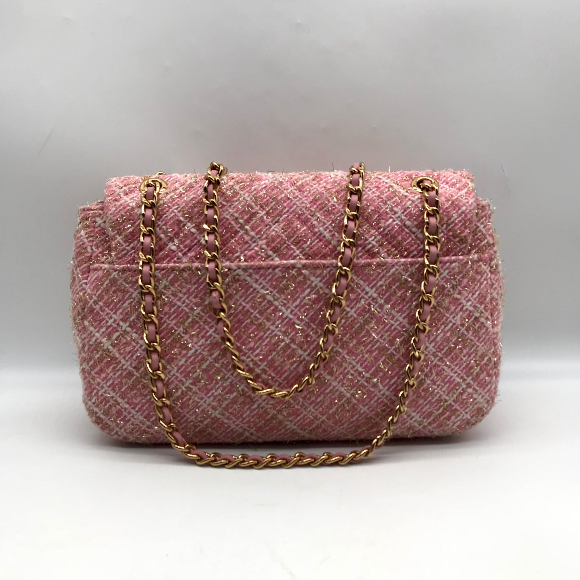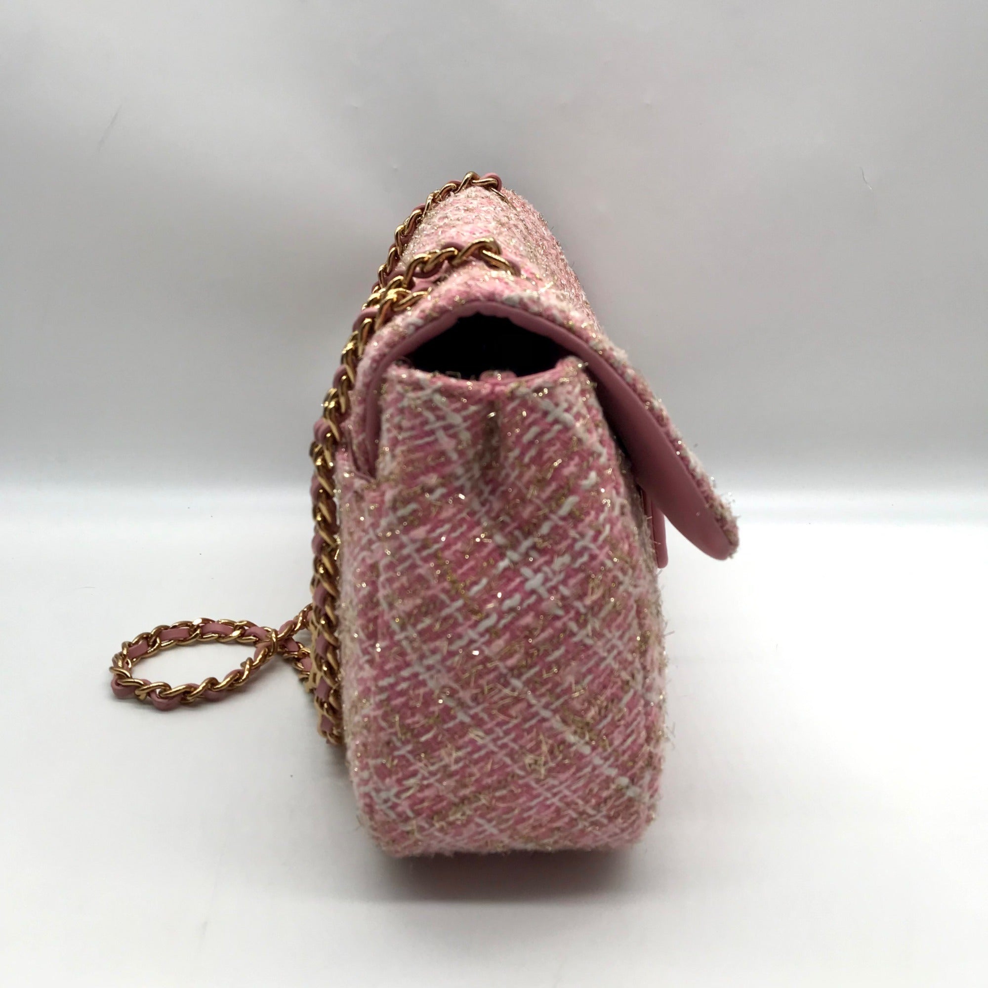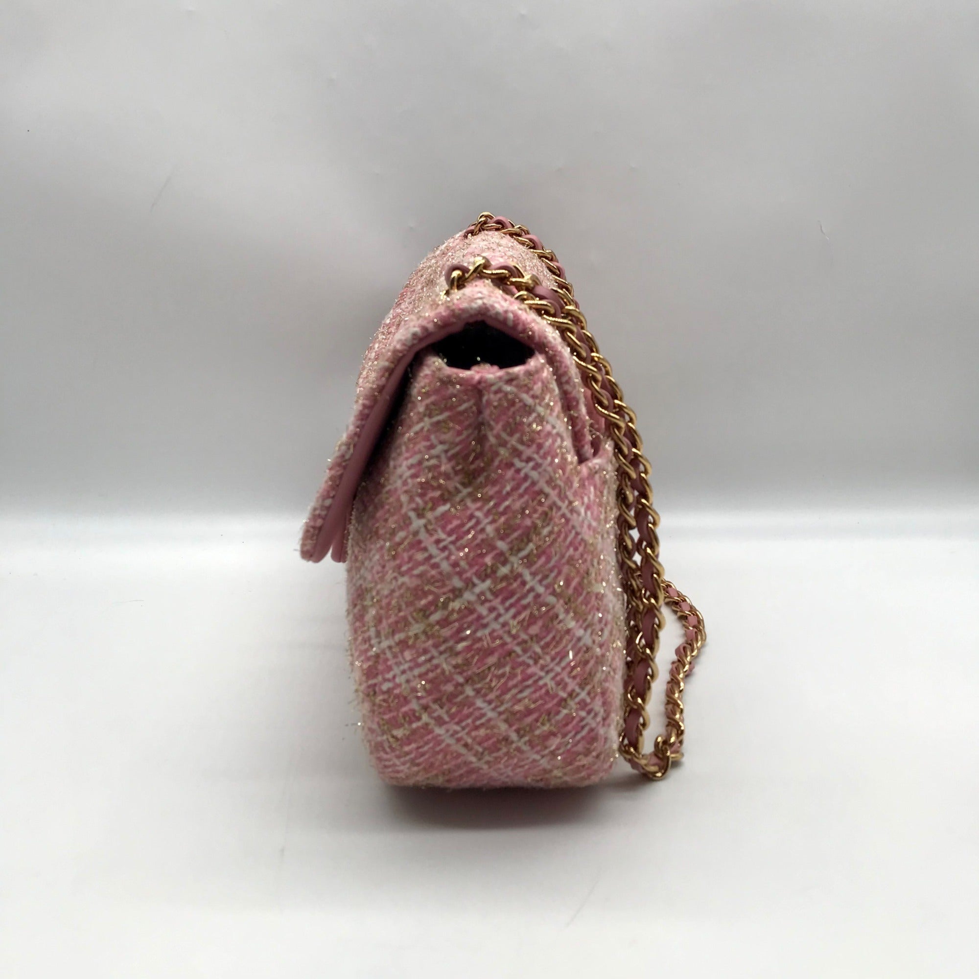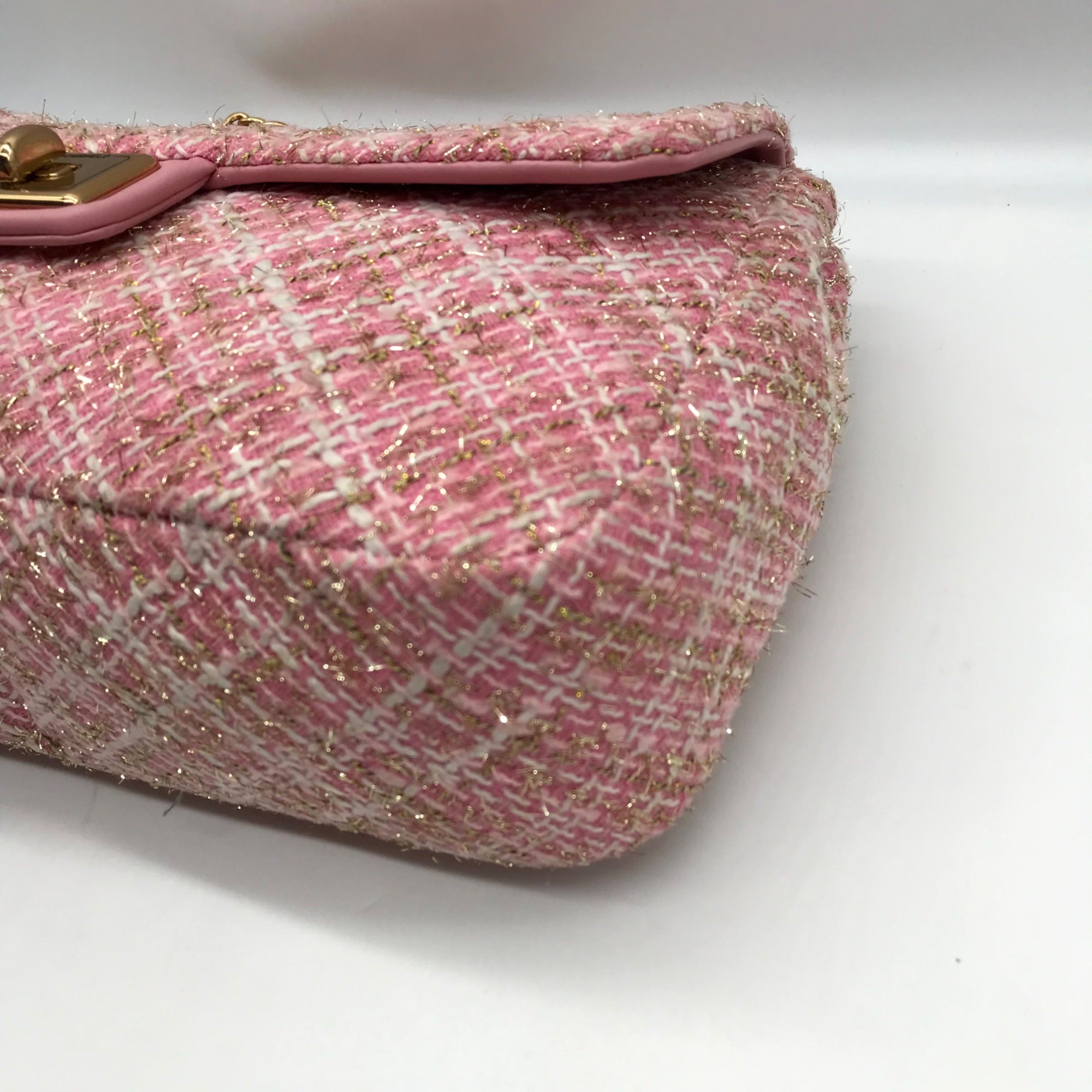 Karl Lagerfeld Pink And Gold Tweed Agyness Adjustable Shoulder Bag