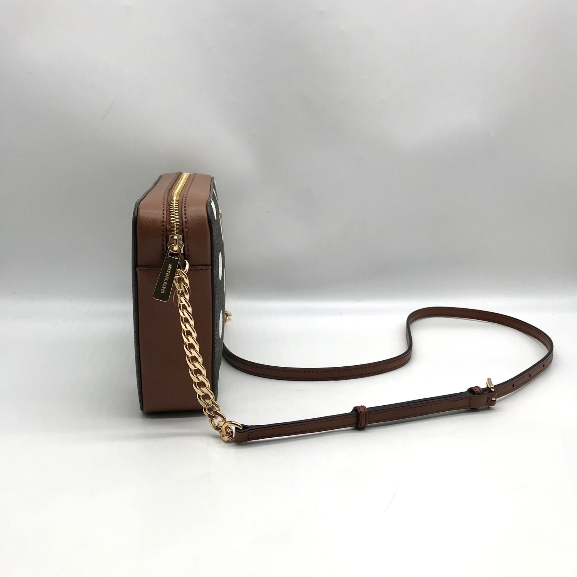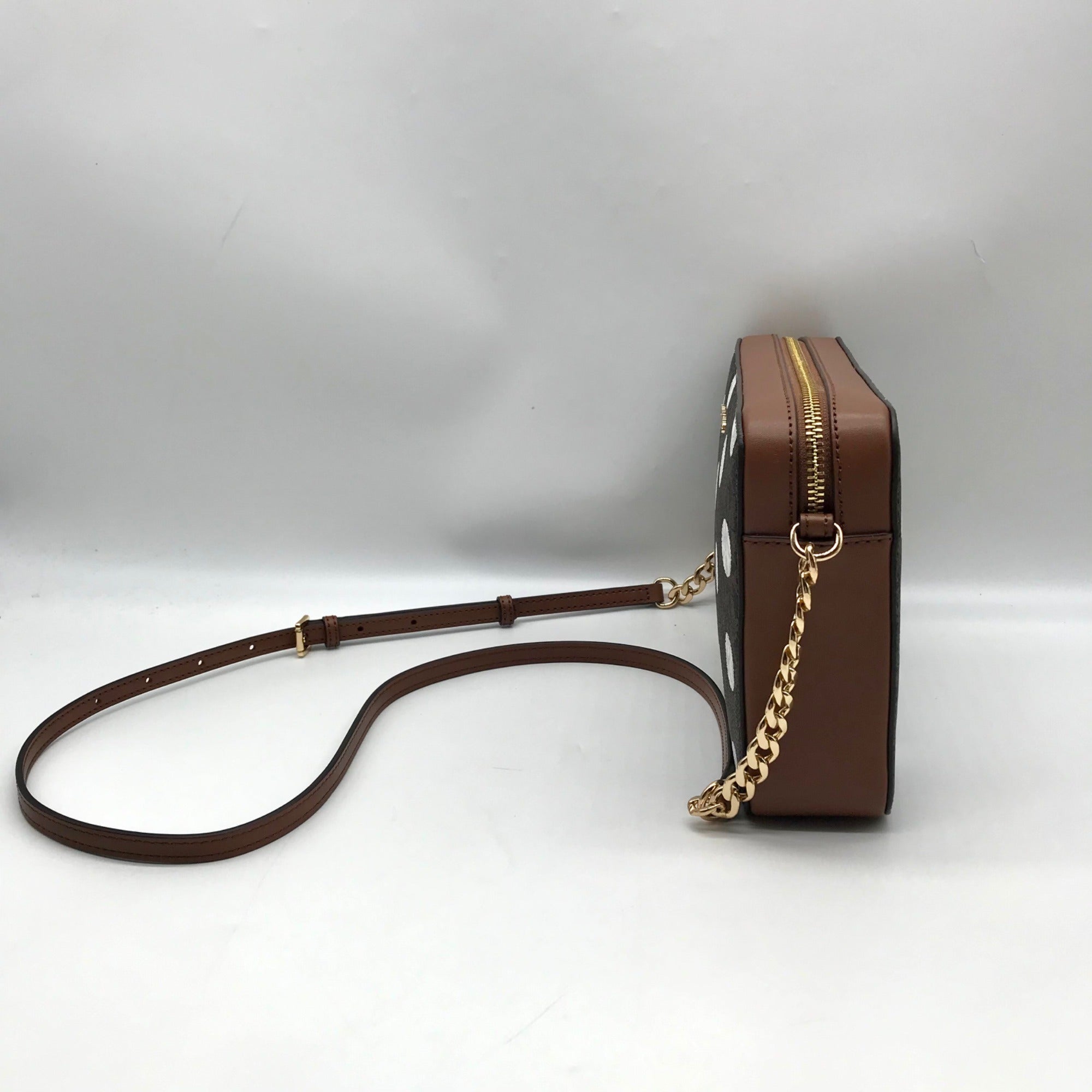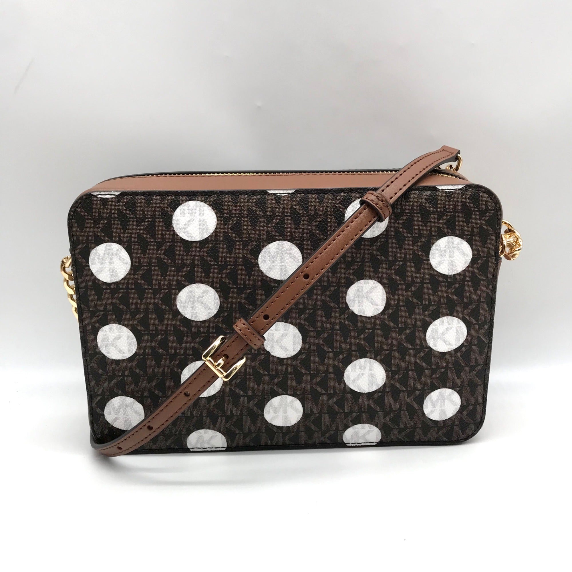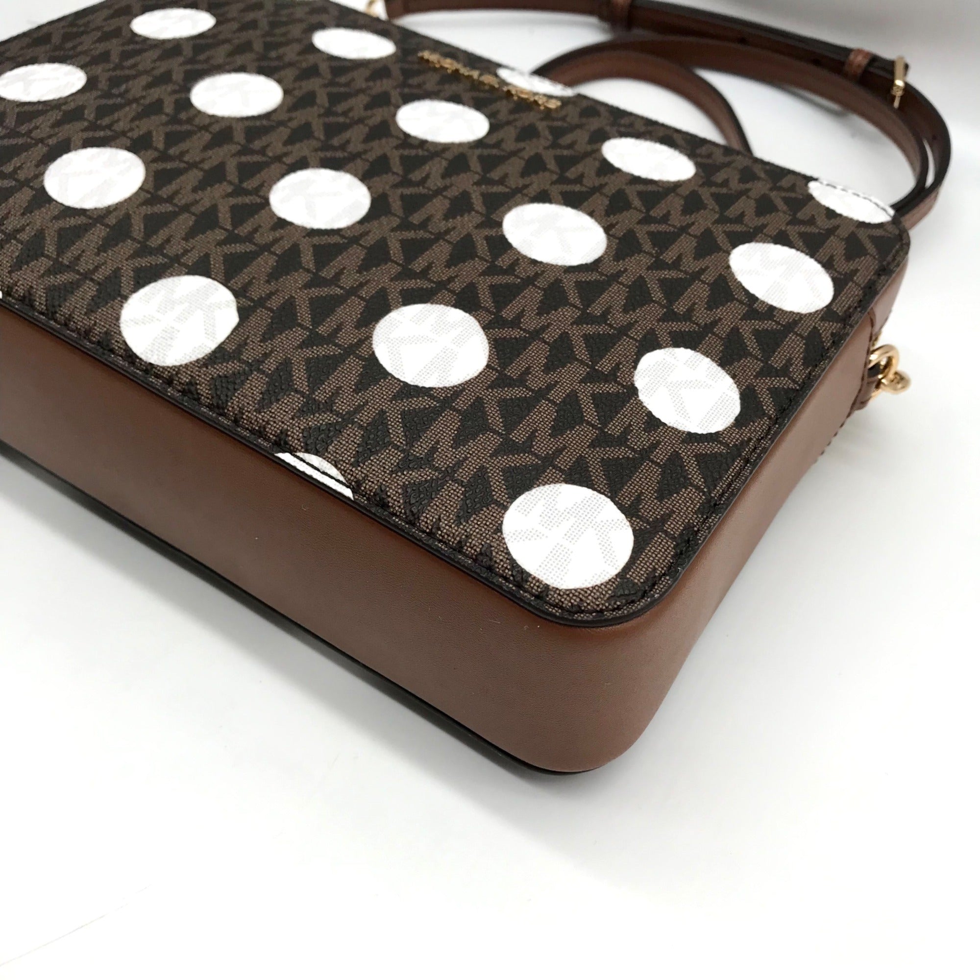 Michael Kors Brown Coated Canvas Jet Set Polkadot Crossbody Bag