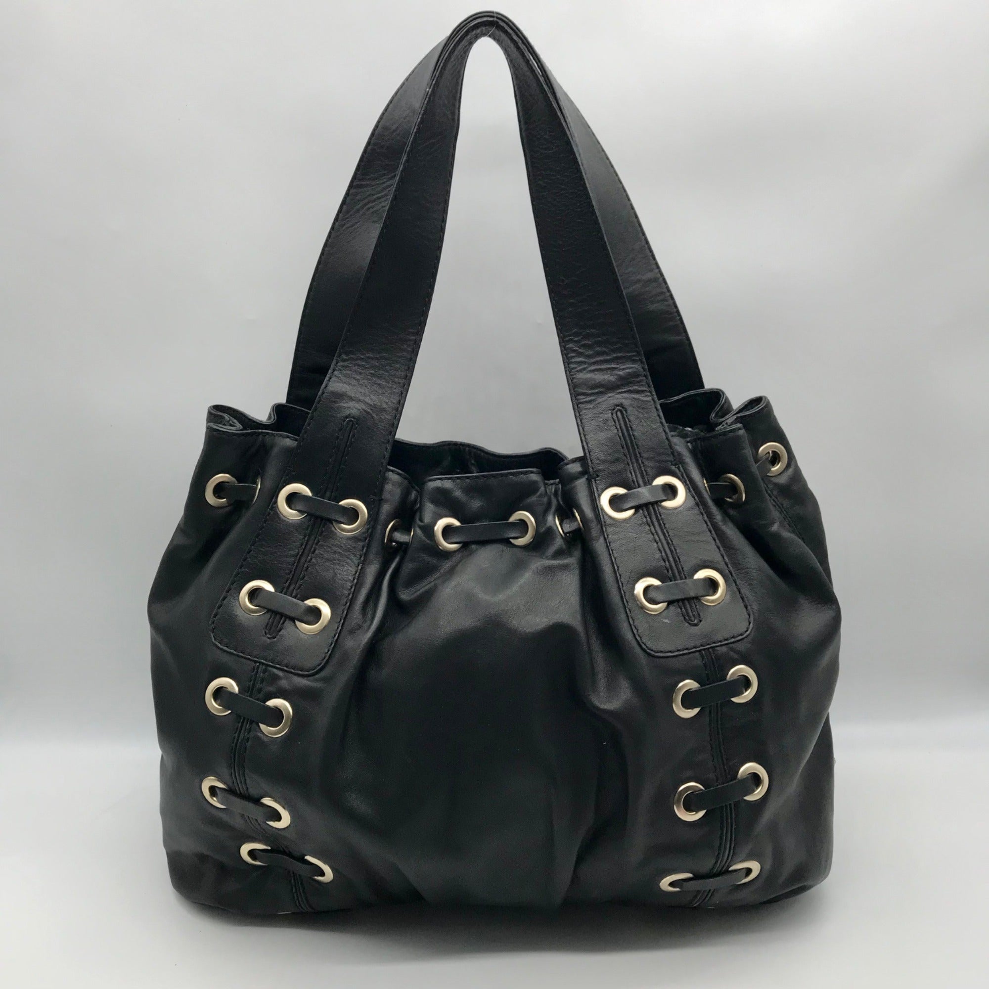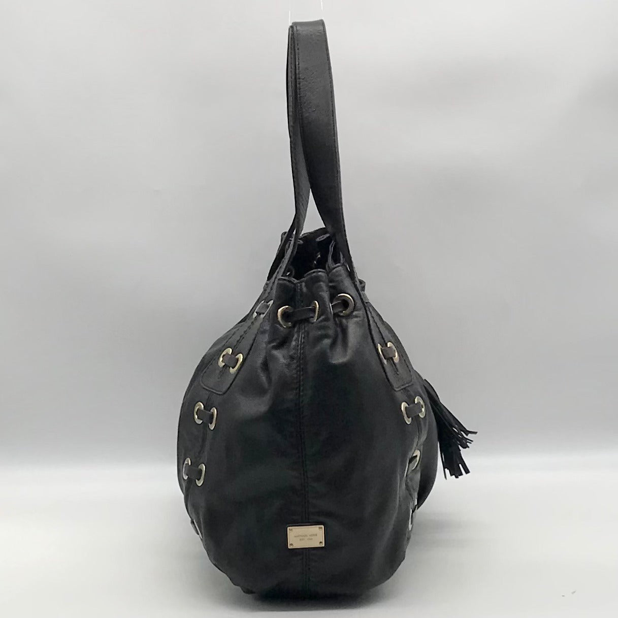 Michael Kors Black Leather Astor Grommet Shoulder Bag
