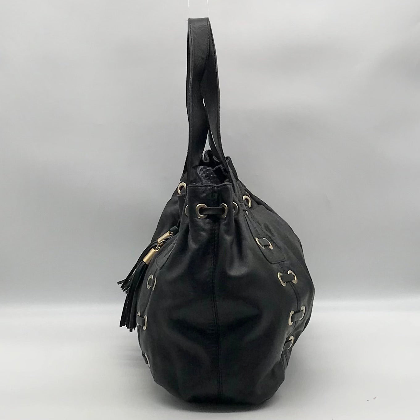 Michael Kors Black Leather Gilly Large Drawstring Travel Tote