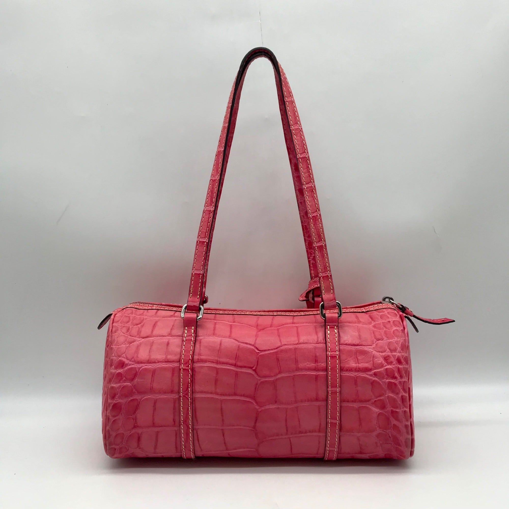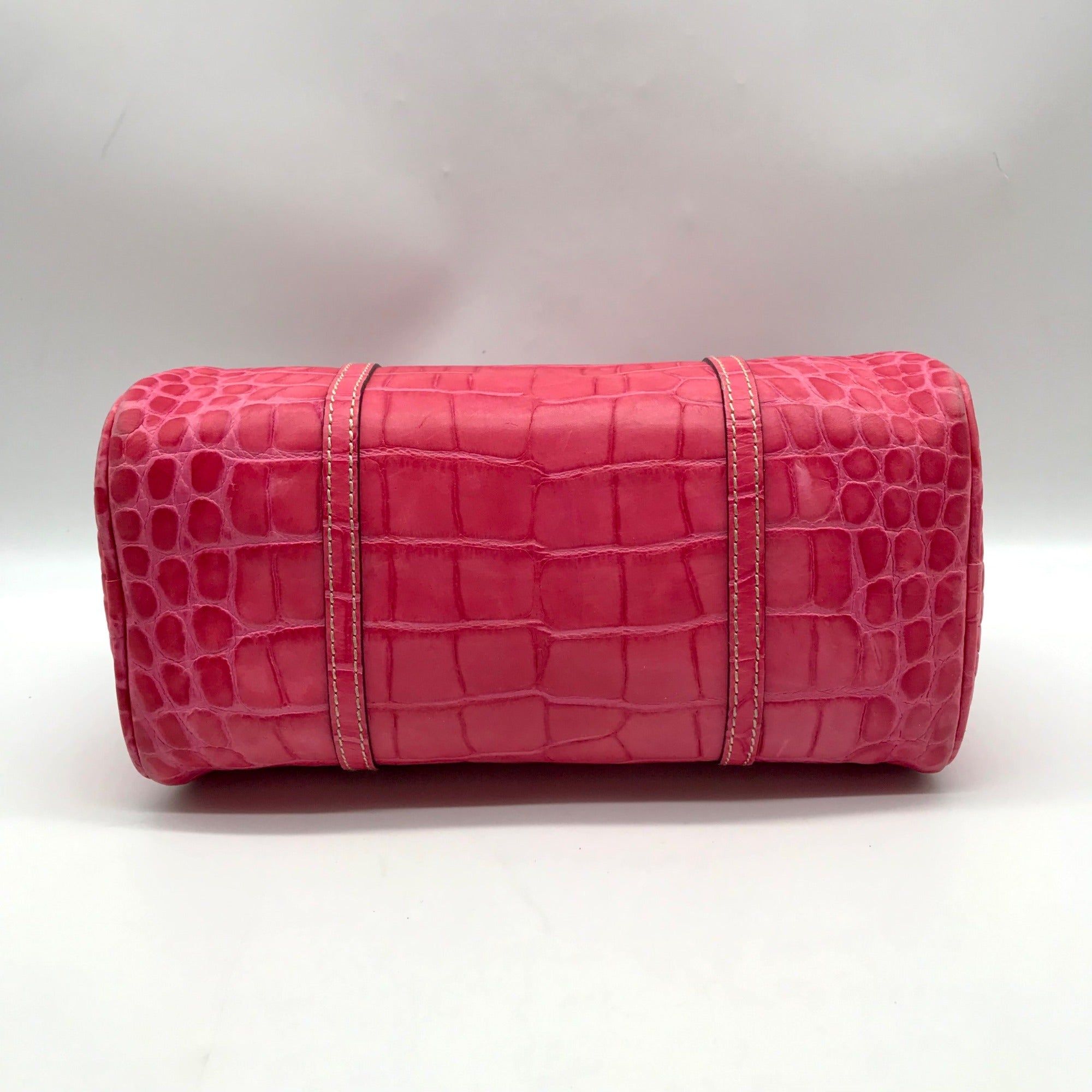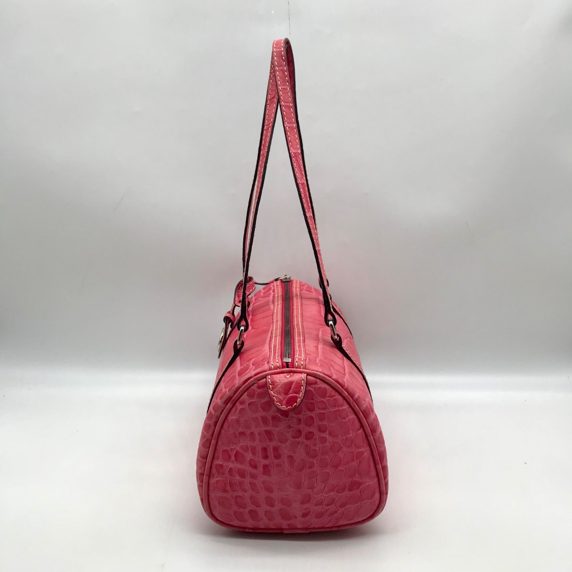 Brahmin Pink Croc Embossed Leather Nile Barrel Shoulder Bag