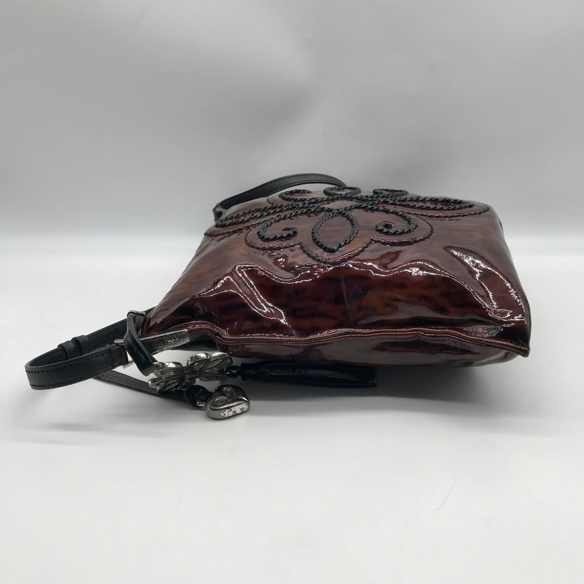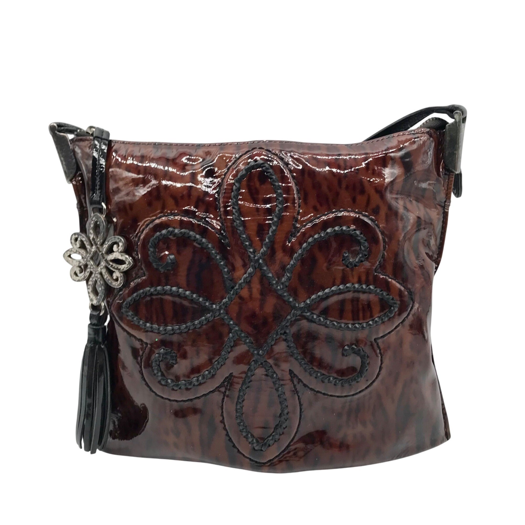 Brighton Brown Patent Leather Medallion Shoulder Bag