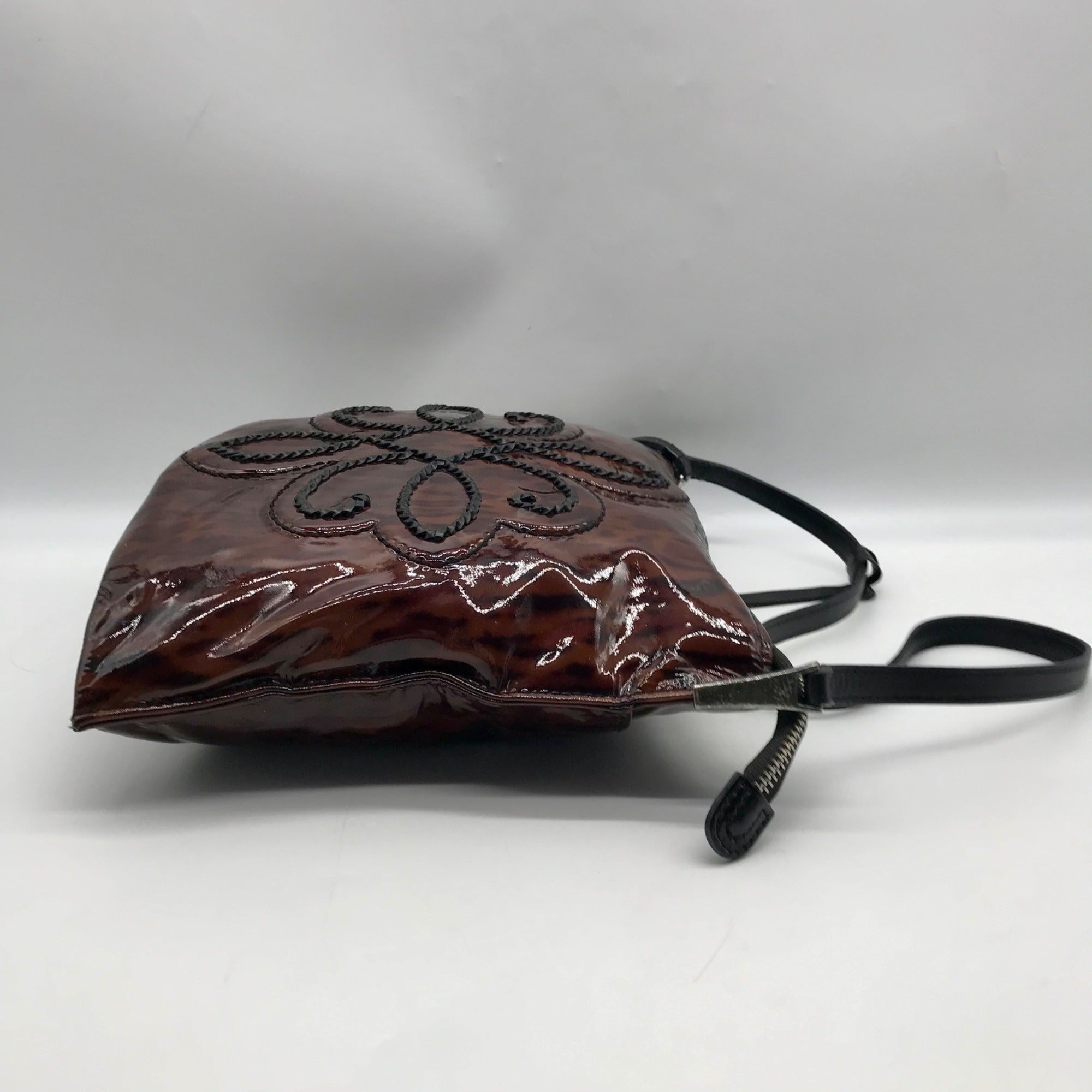 Brighton Brown Patent Leather Embossed Hobo