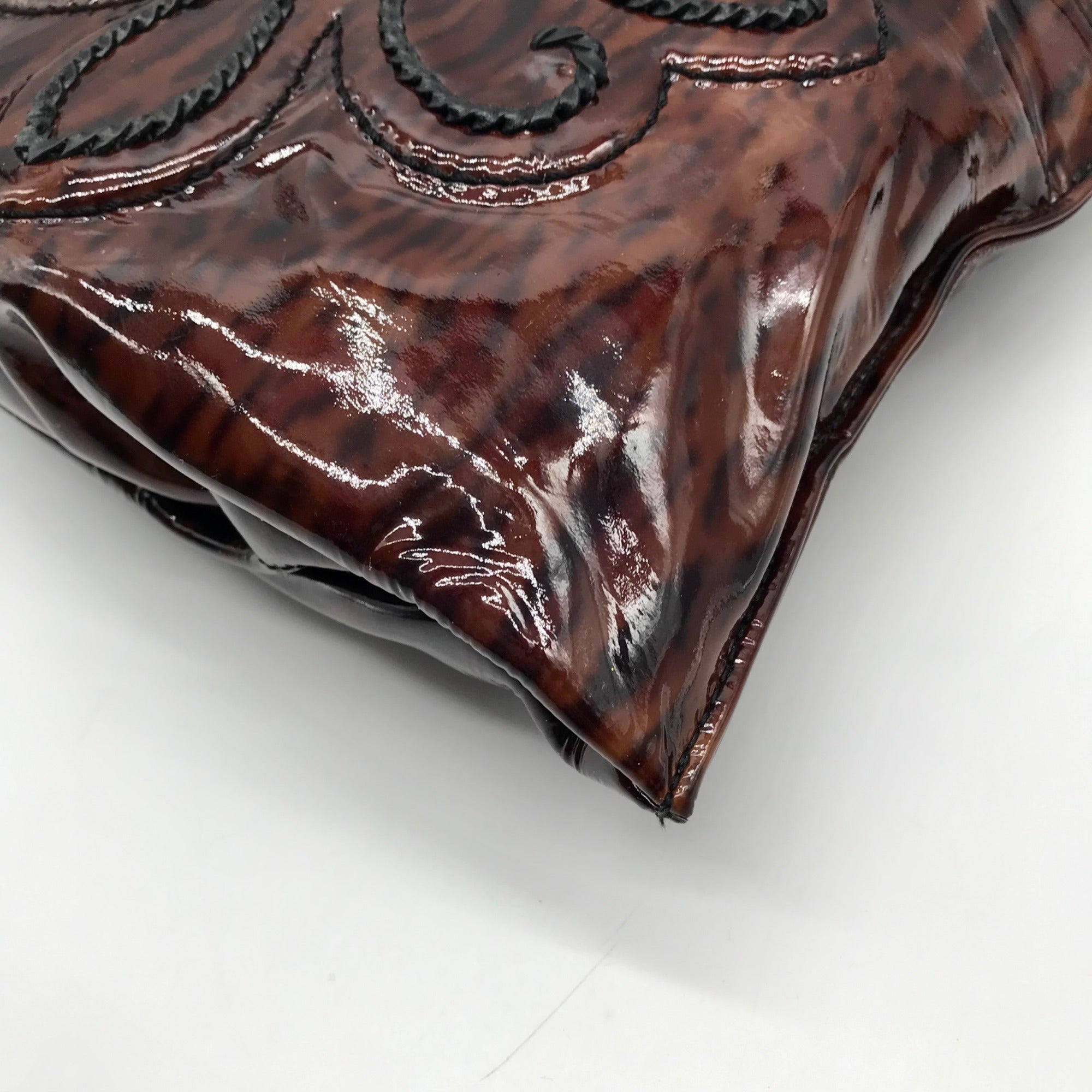 Brighton Brown Wild Tiger Patent Leather Brazos Crossbody