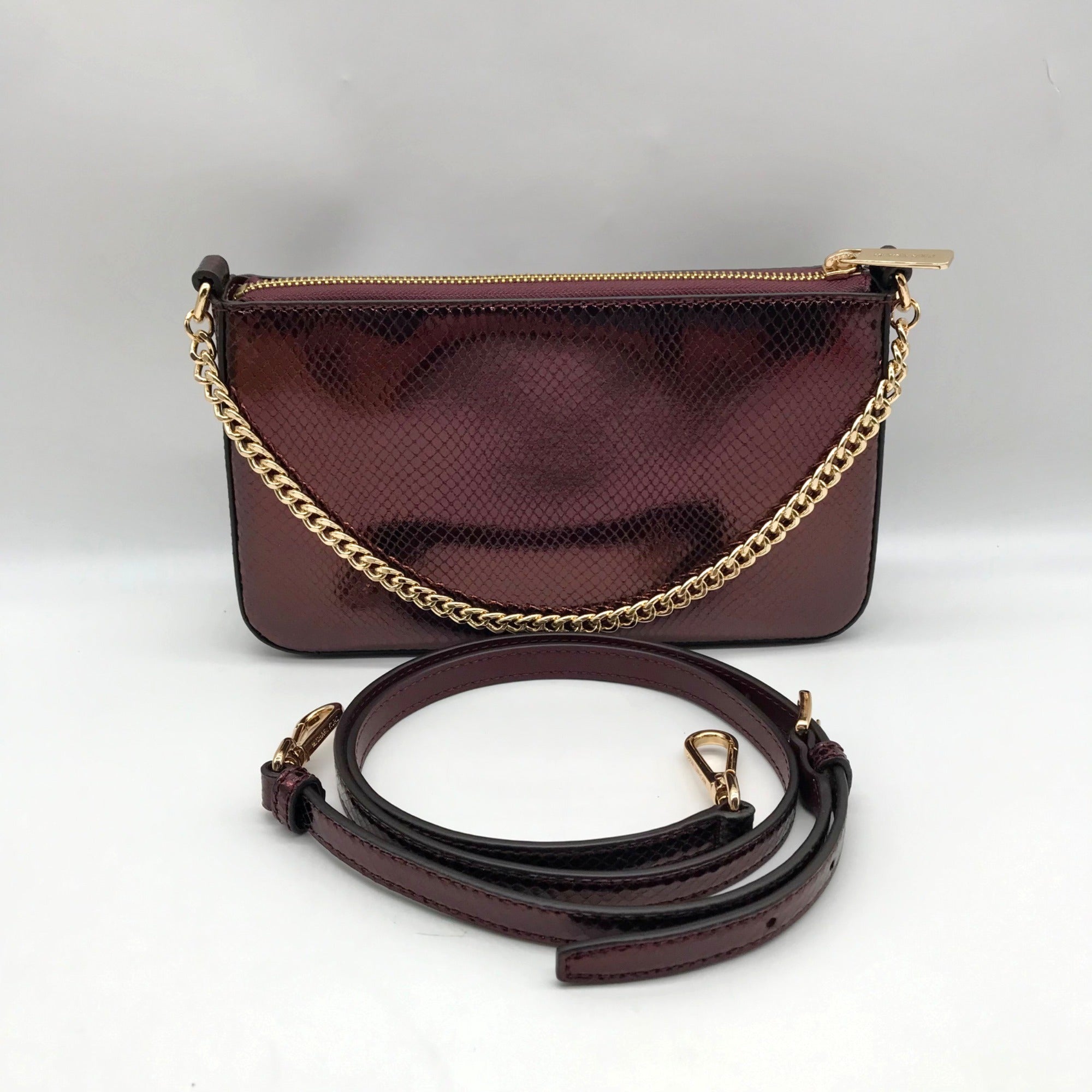 Michael Kors Oxblood Pebbled Leather Carmela Pouchette Crossbody Bag