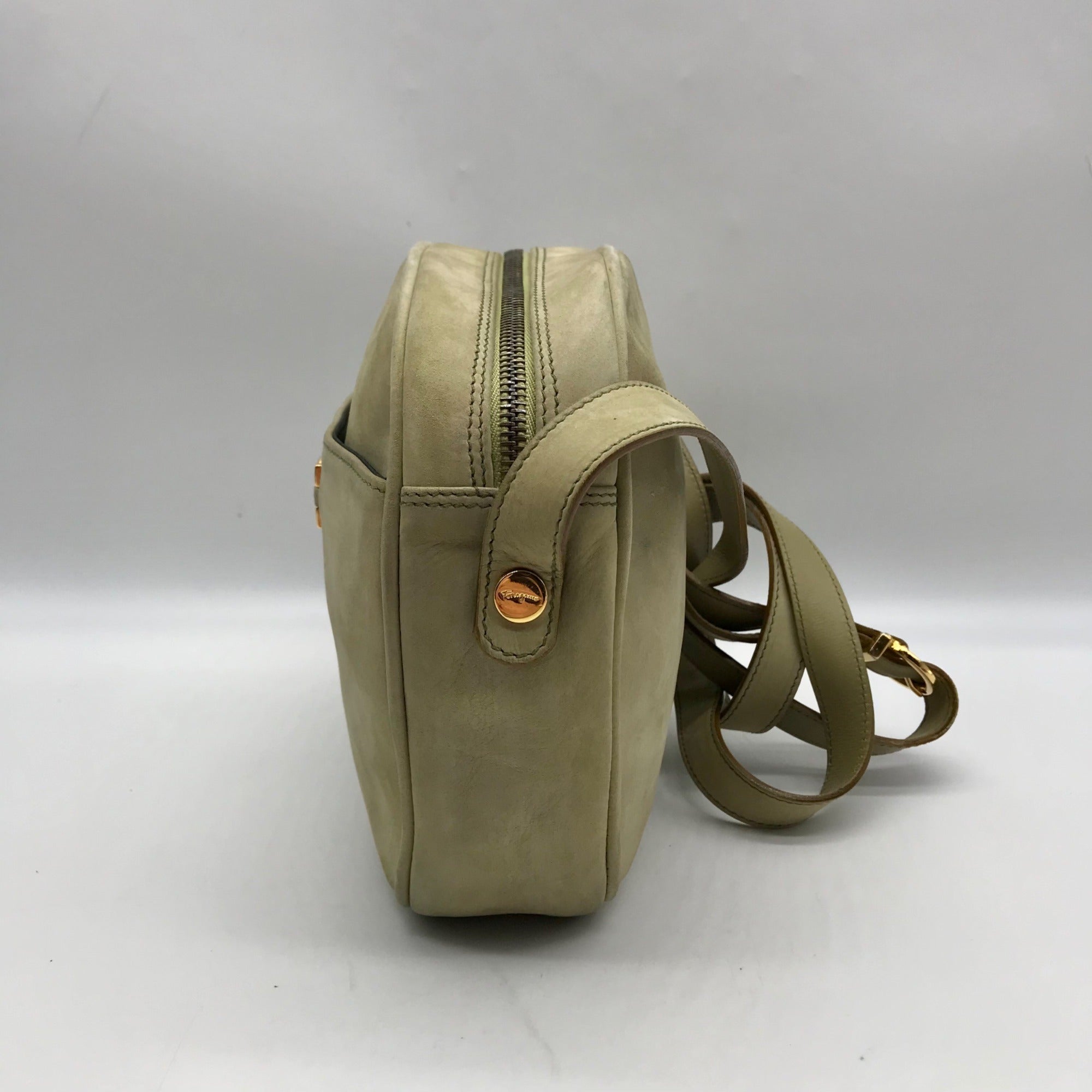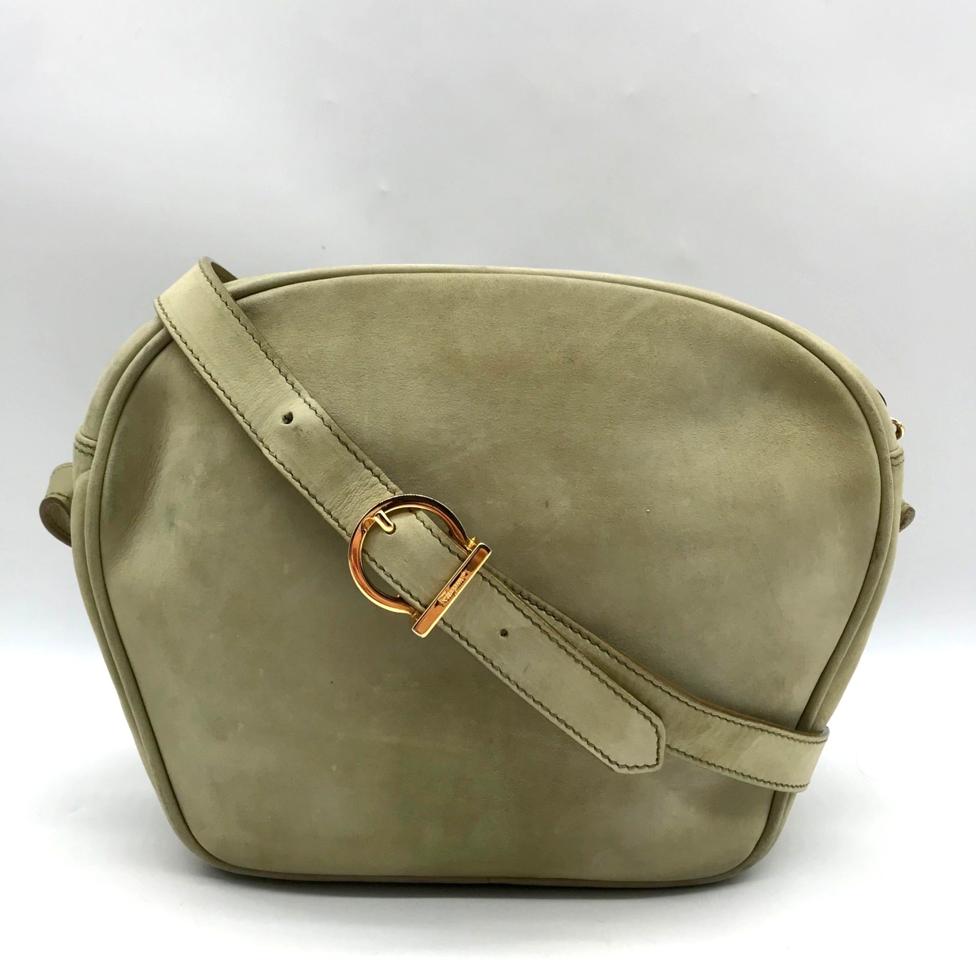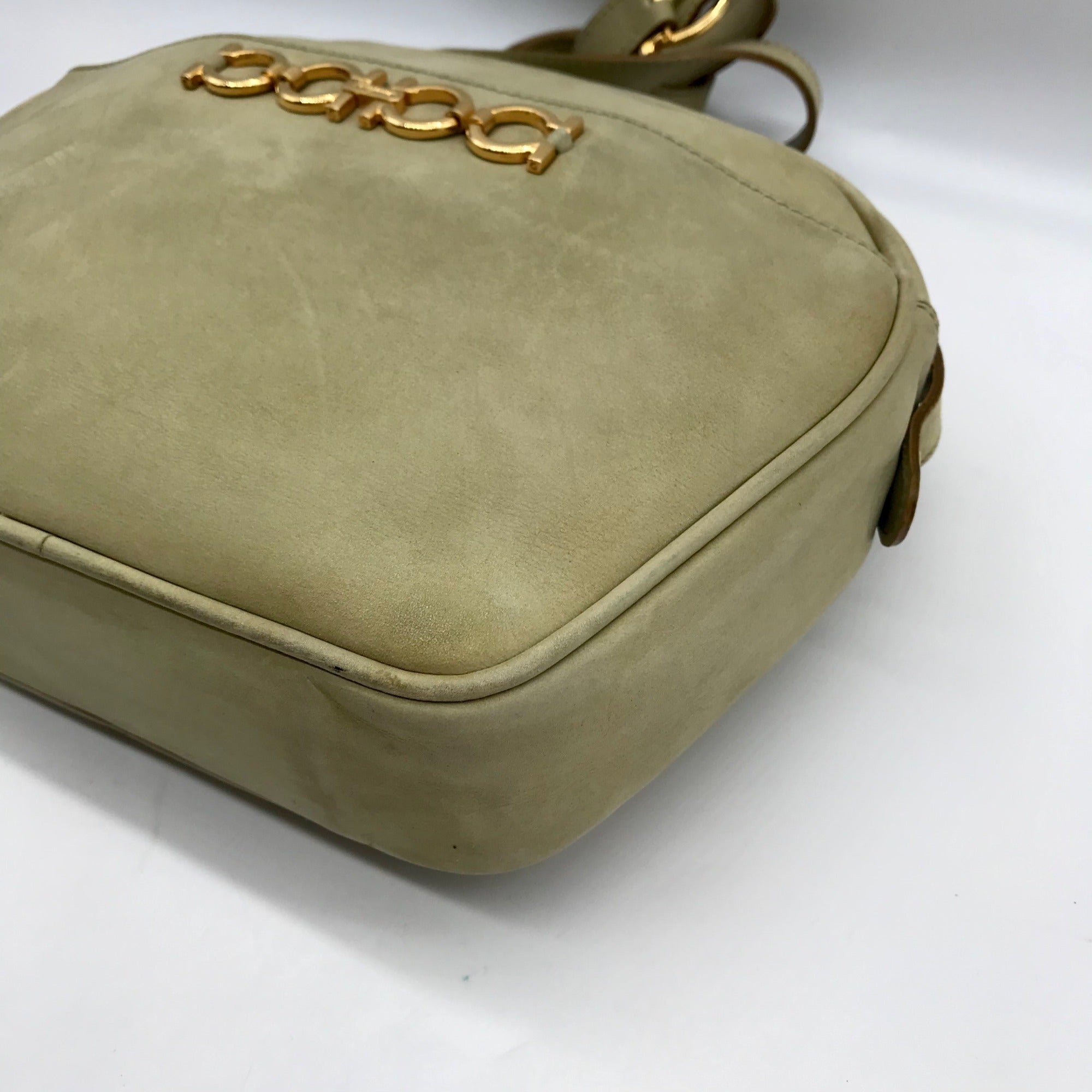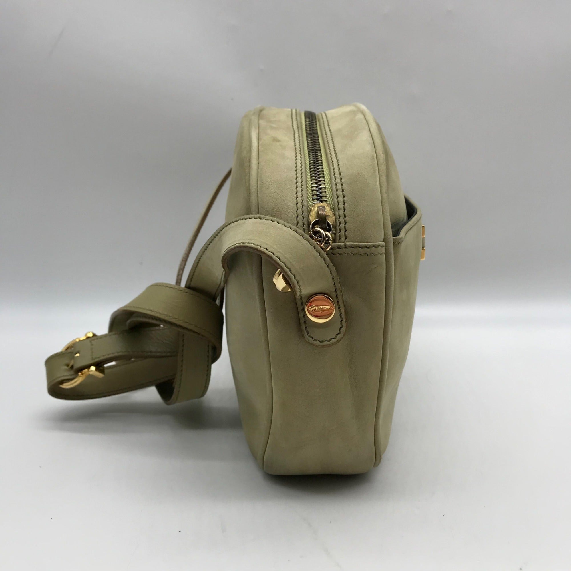 Salvatore Ferragamo Light Green Suede Fancini Shoulder Bag