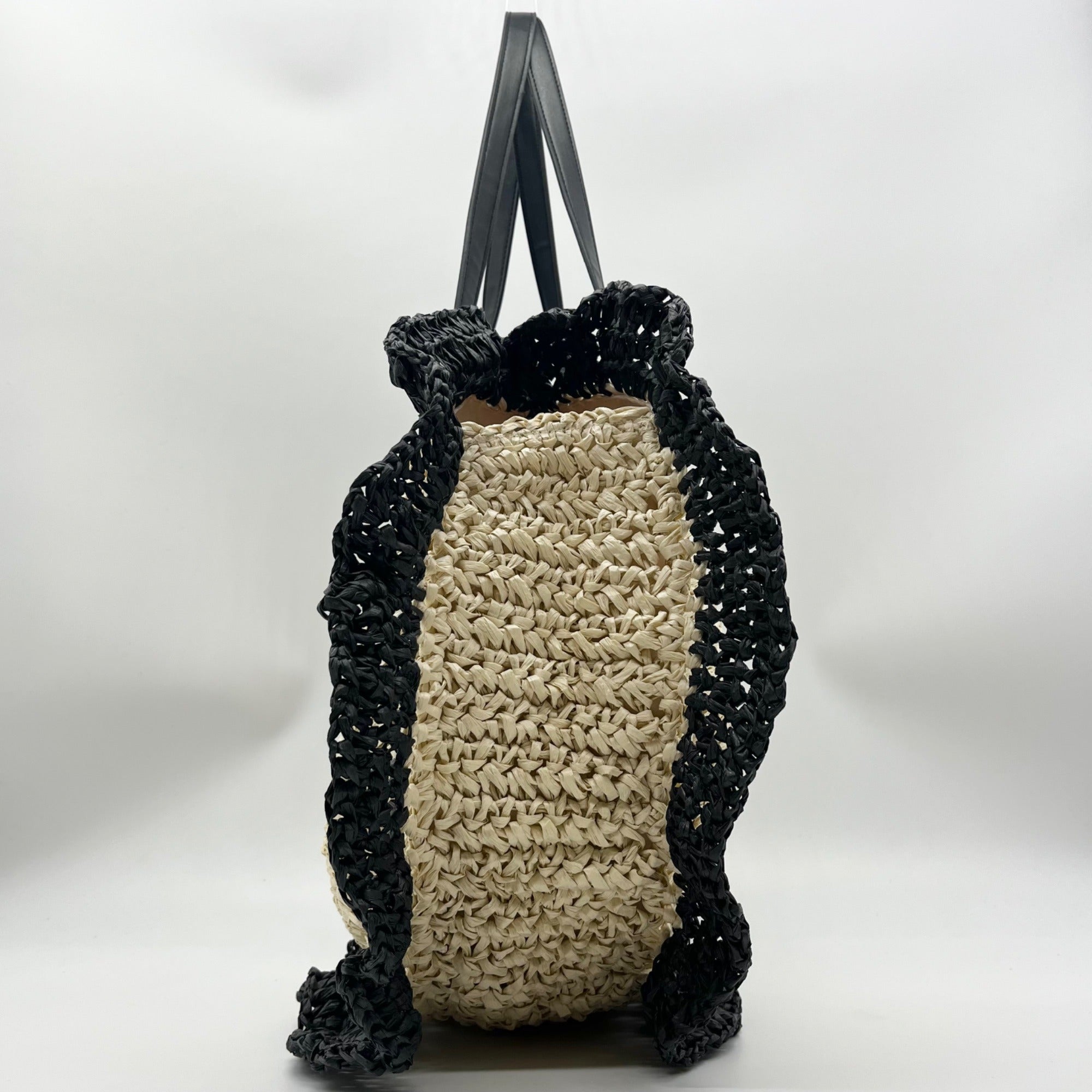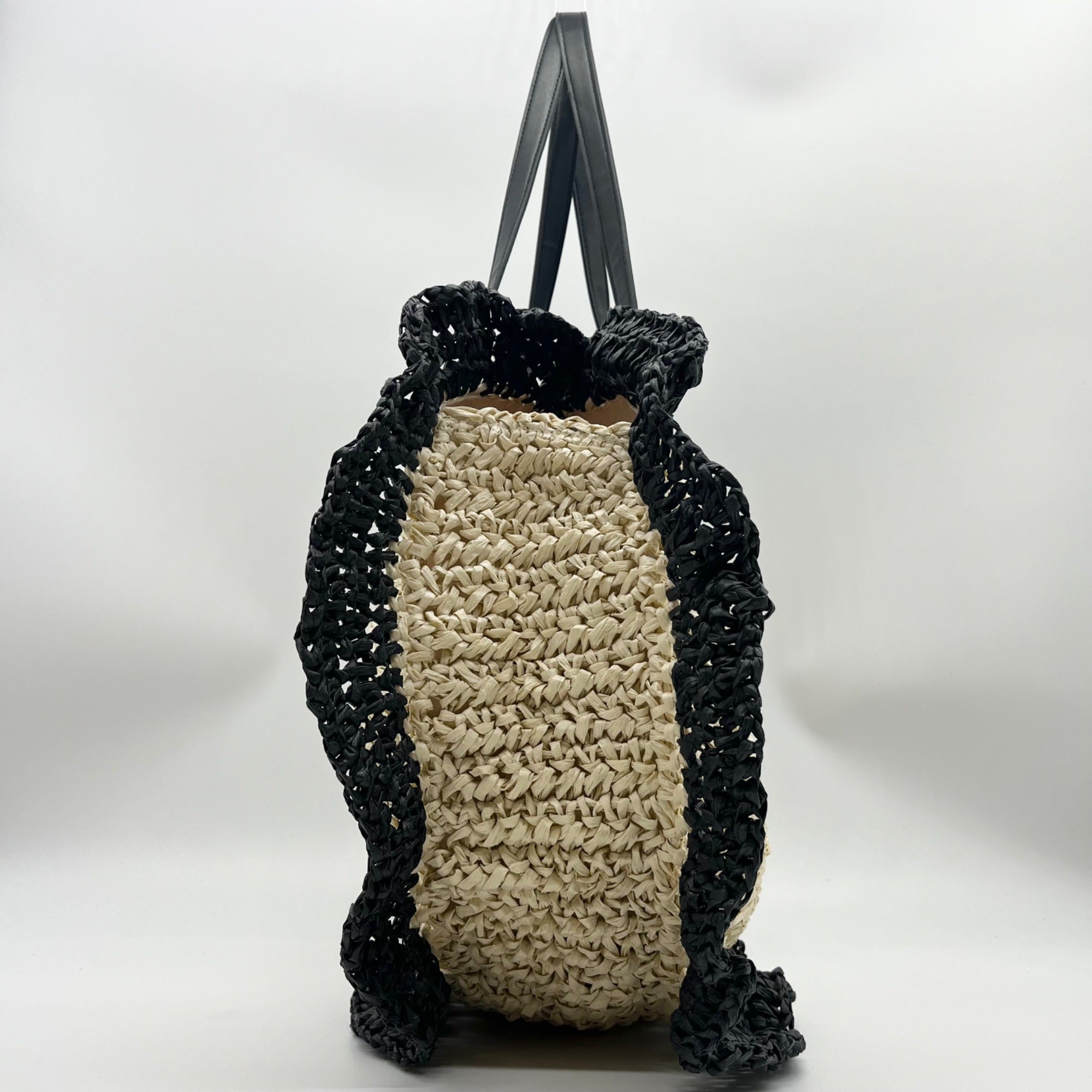 Urban Expressions Natural and Black Indy Tote Bag with Ruffle Edges