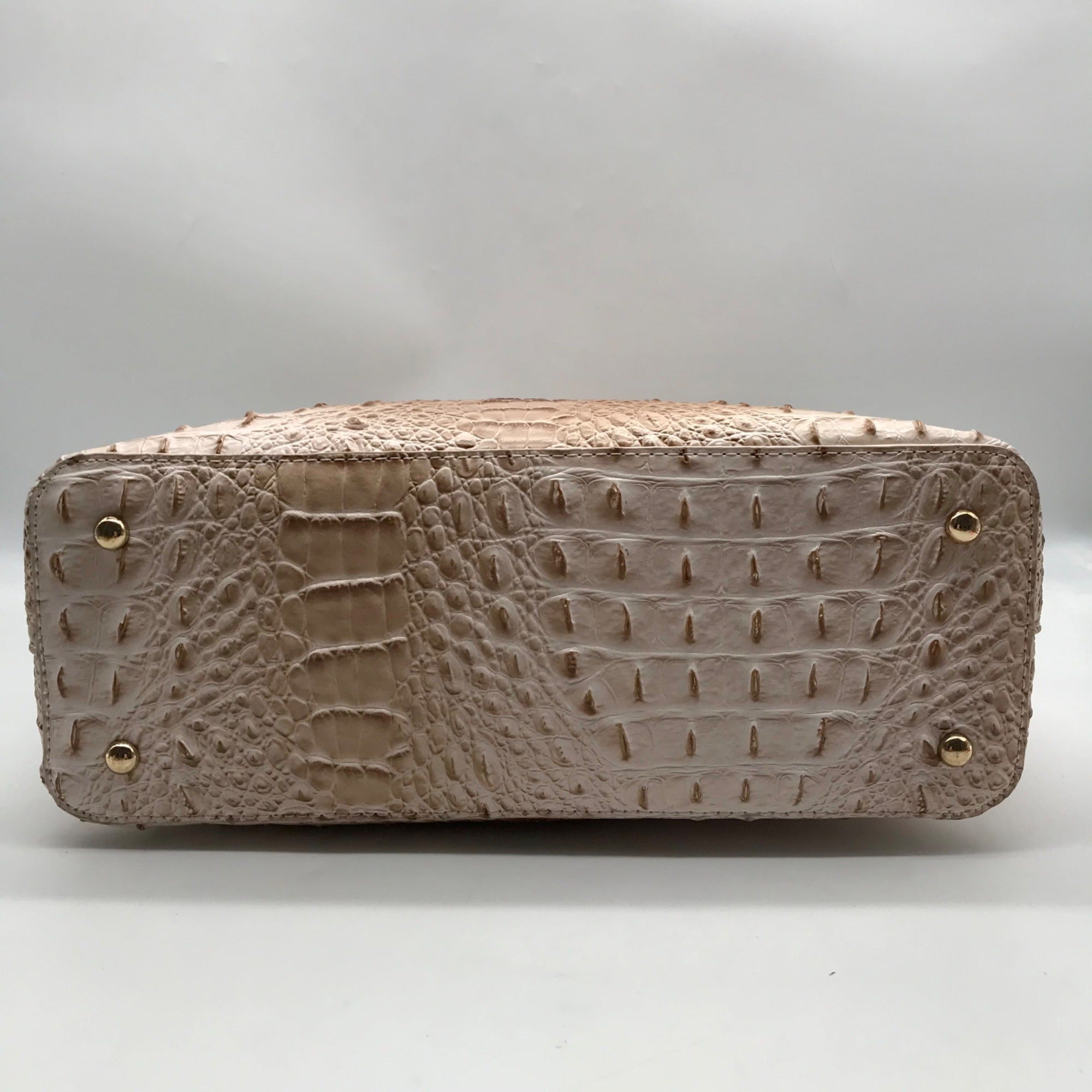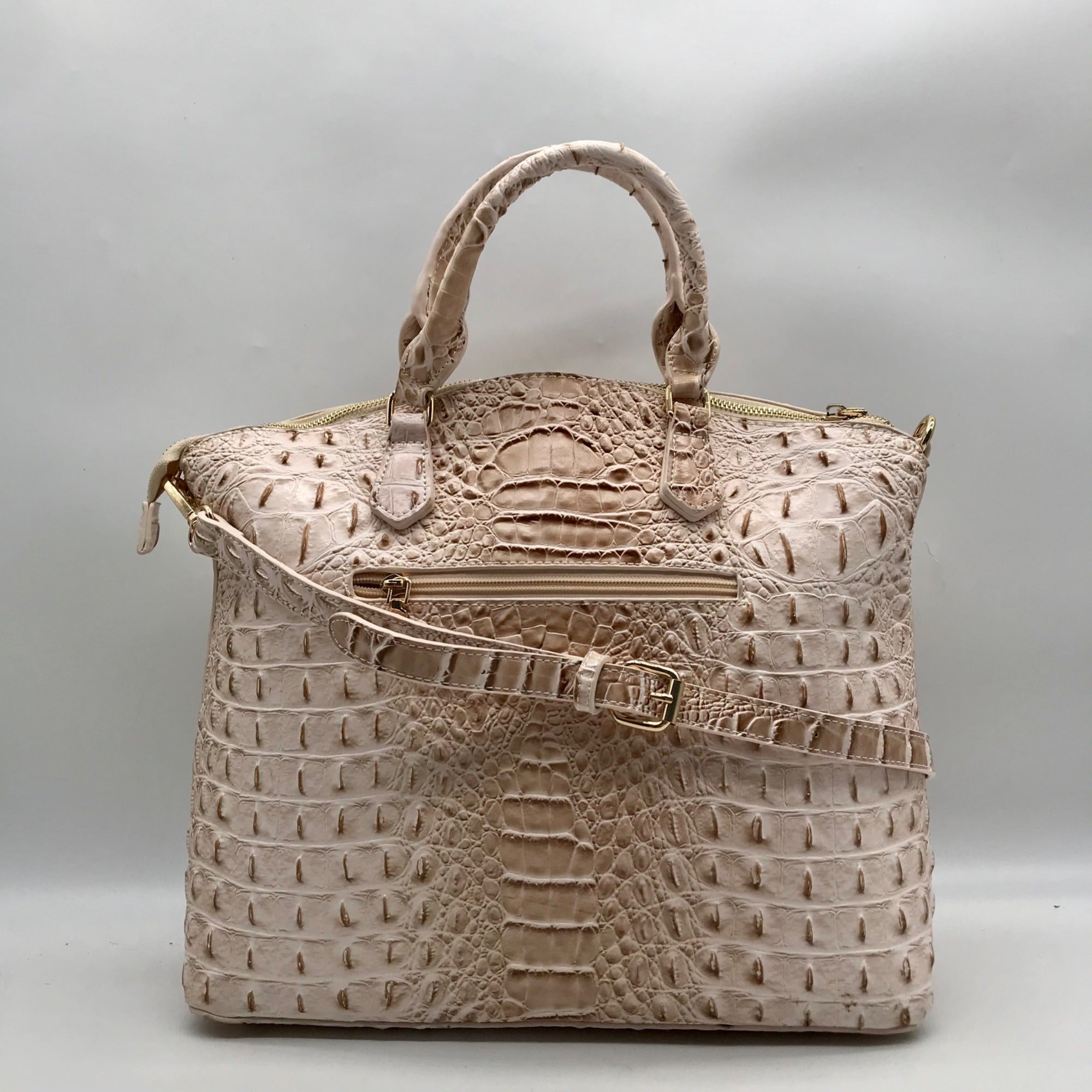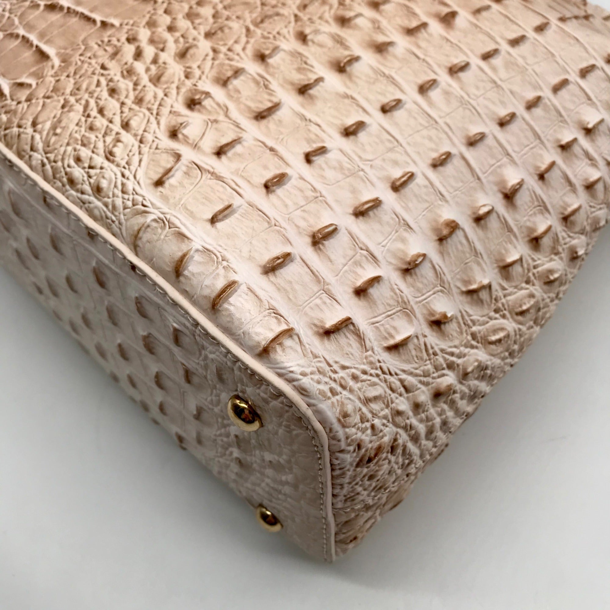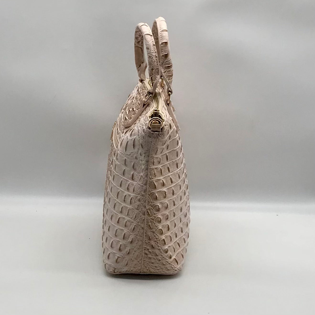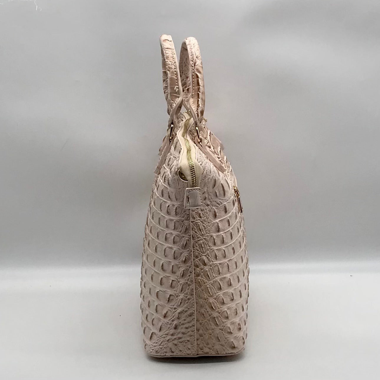 Zan Studio Beige Croc Embossed Leather Convertible Satchel Bag
