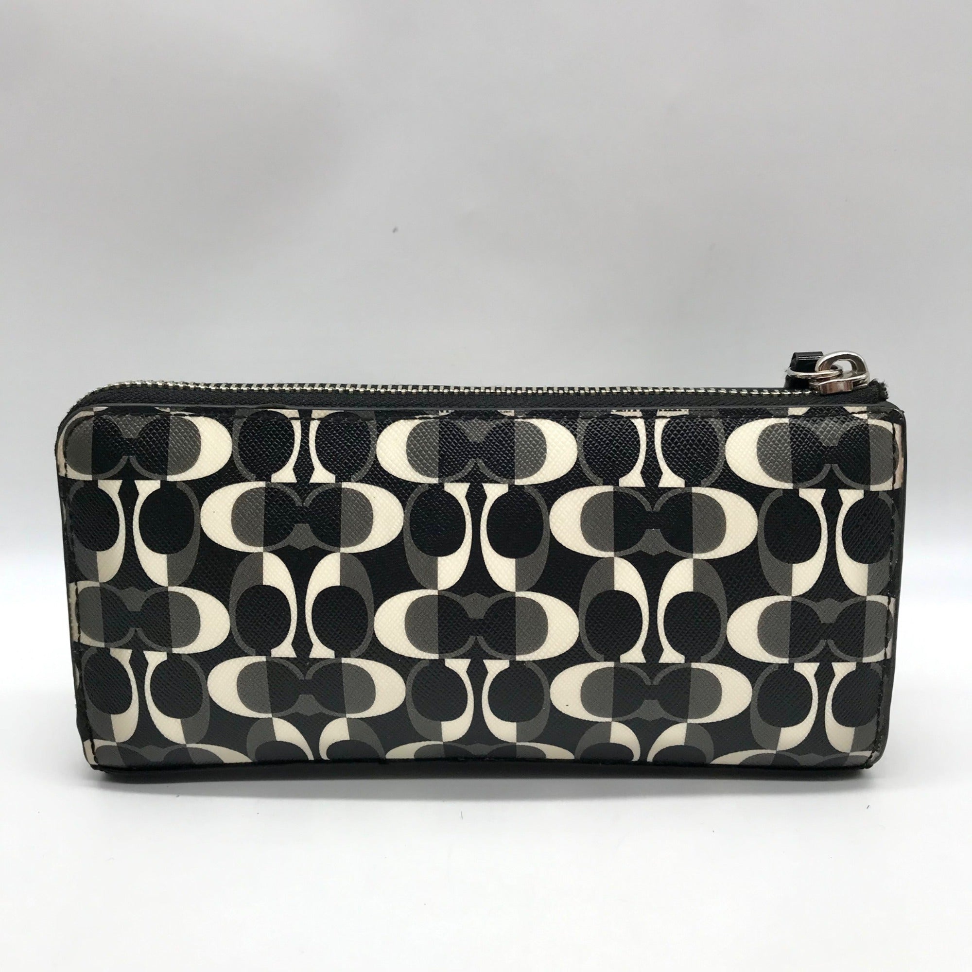 Coach Black And White Coated Canvas Slim Zip Wallet