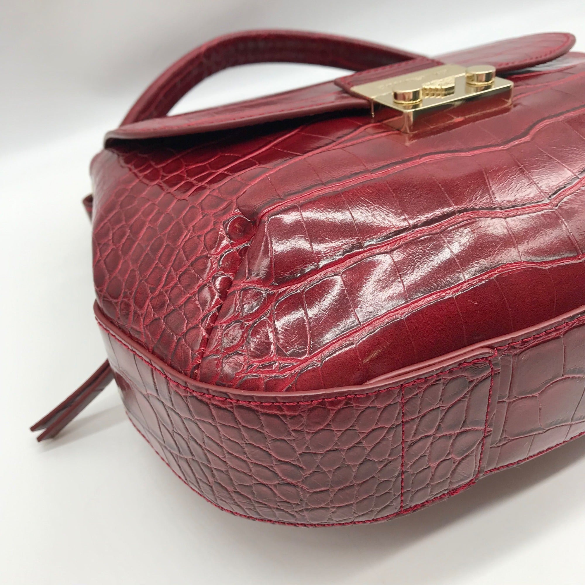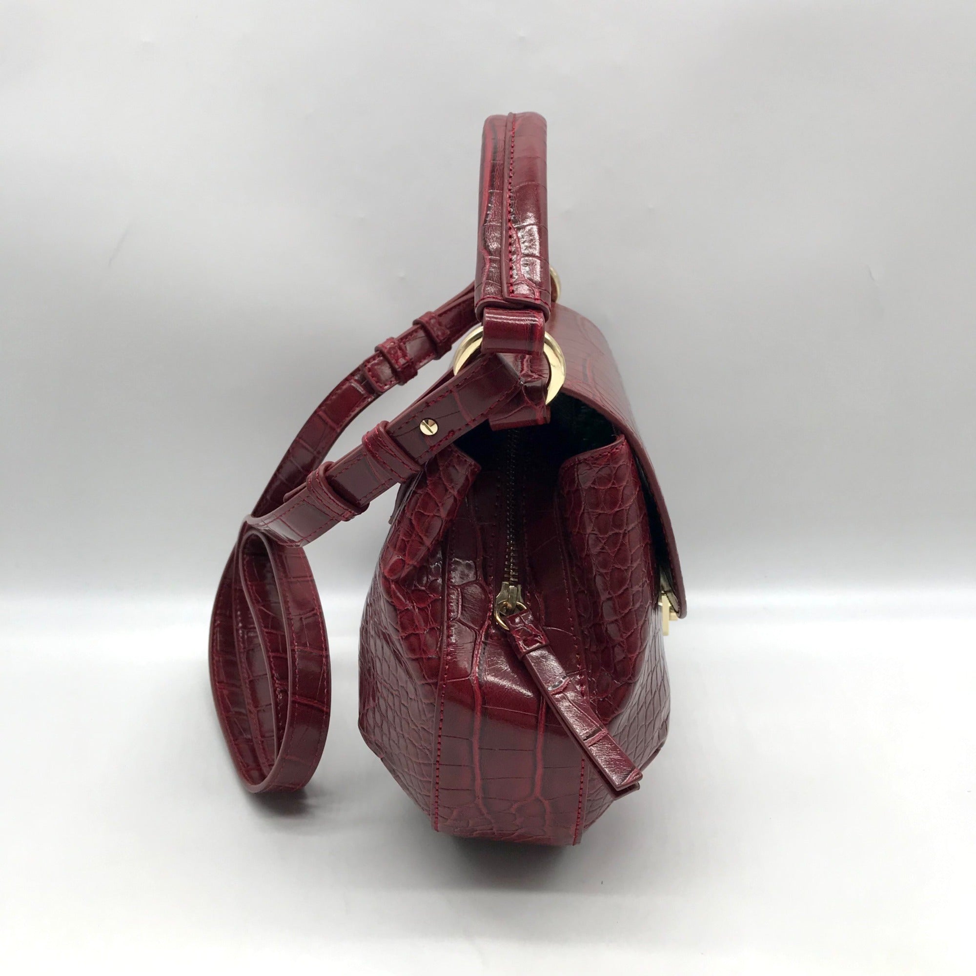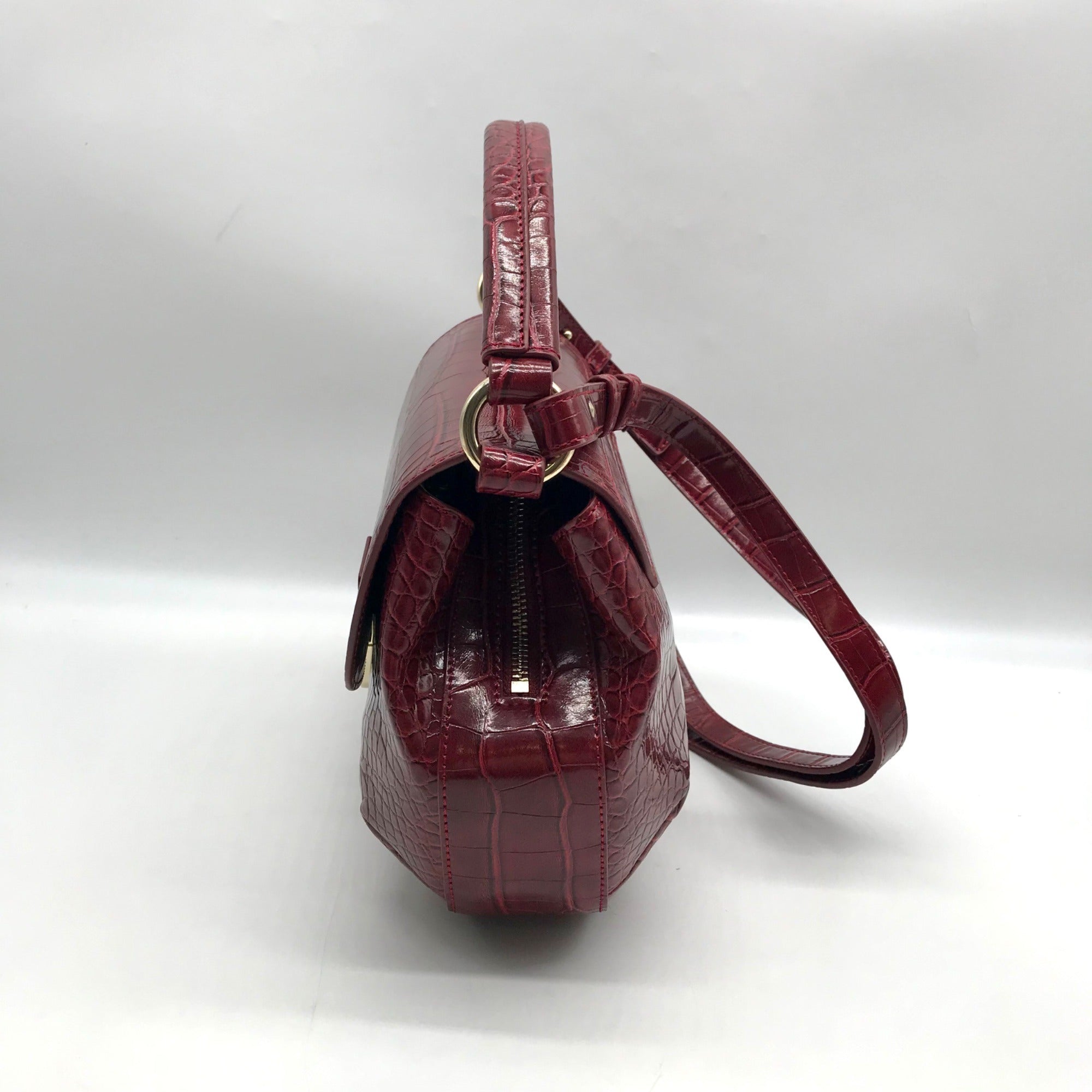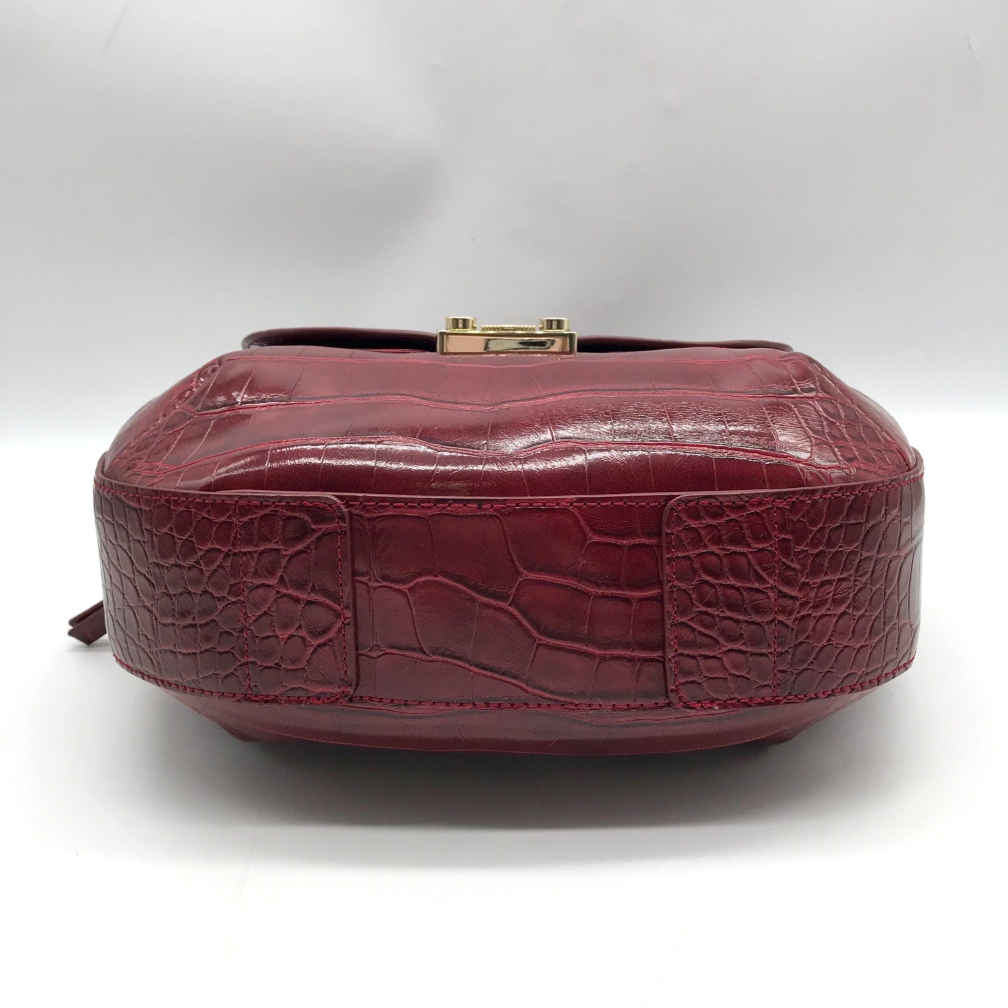 Emporio Armani Burgundy Croc Embossed Leather Crossbody Bag