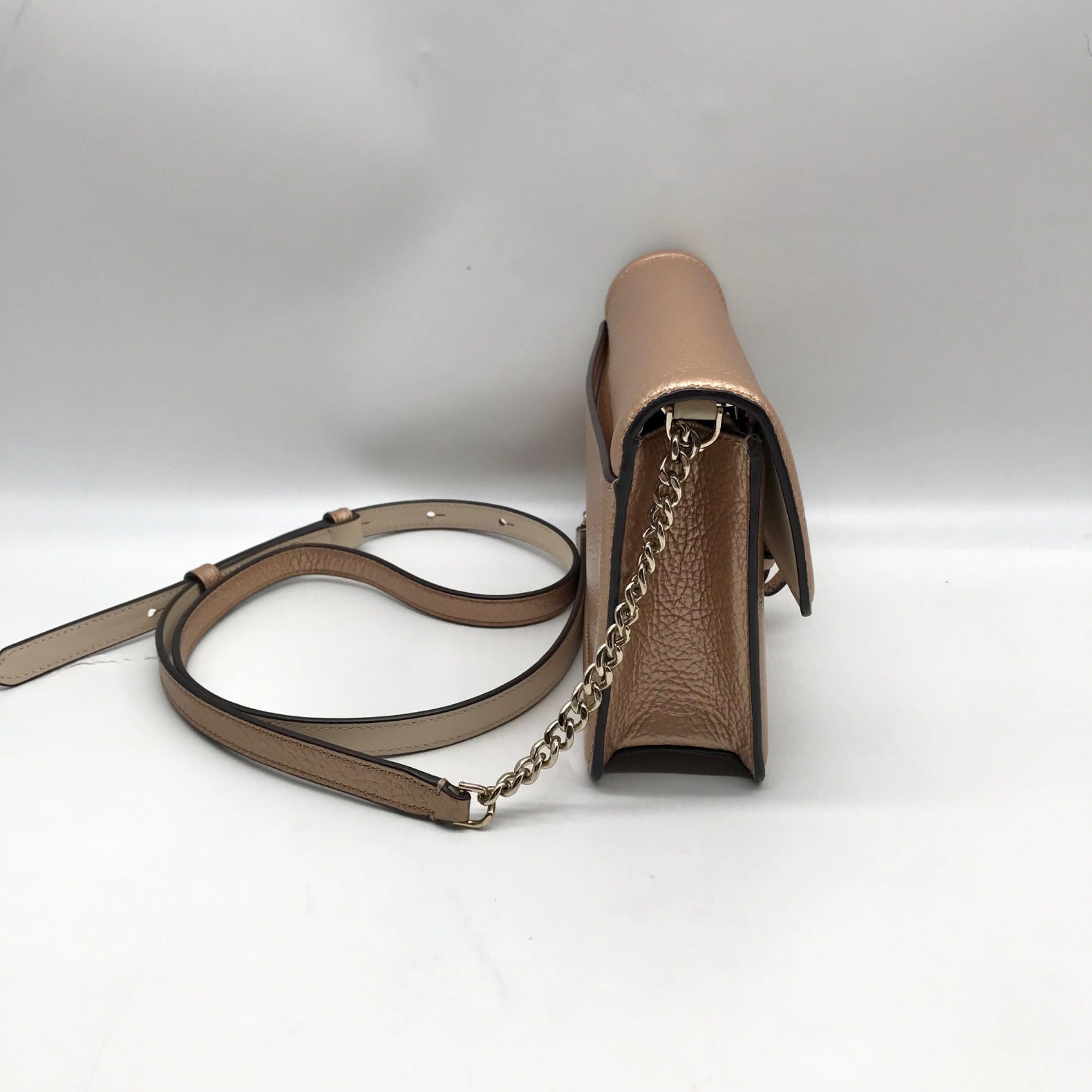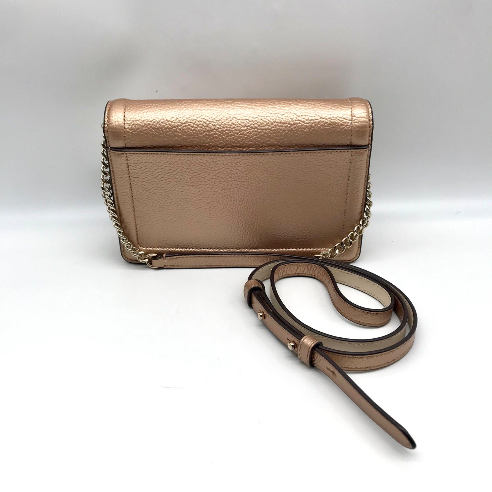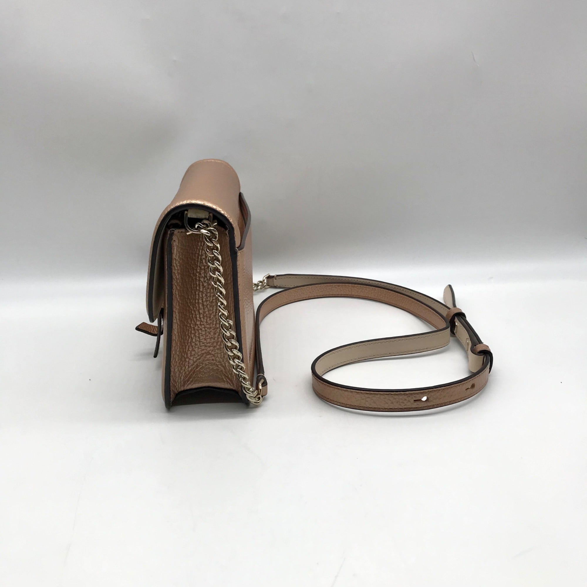 Kate Spade Rose Gold Pebbled Leather Knott Flap Crossbody Bag