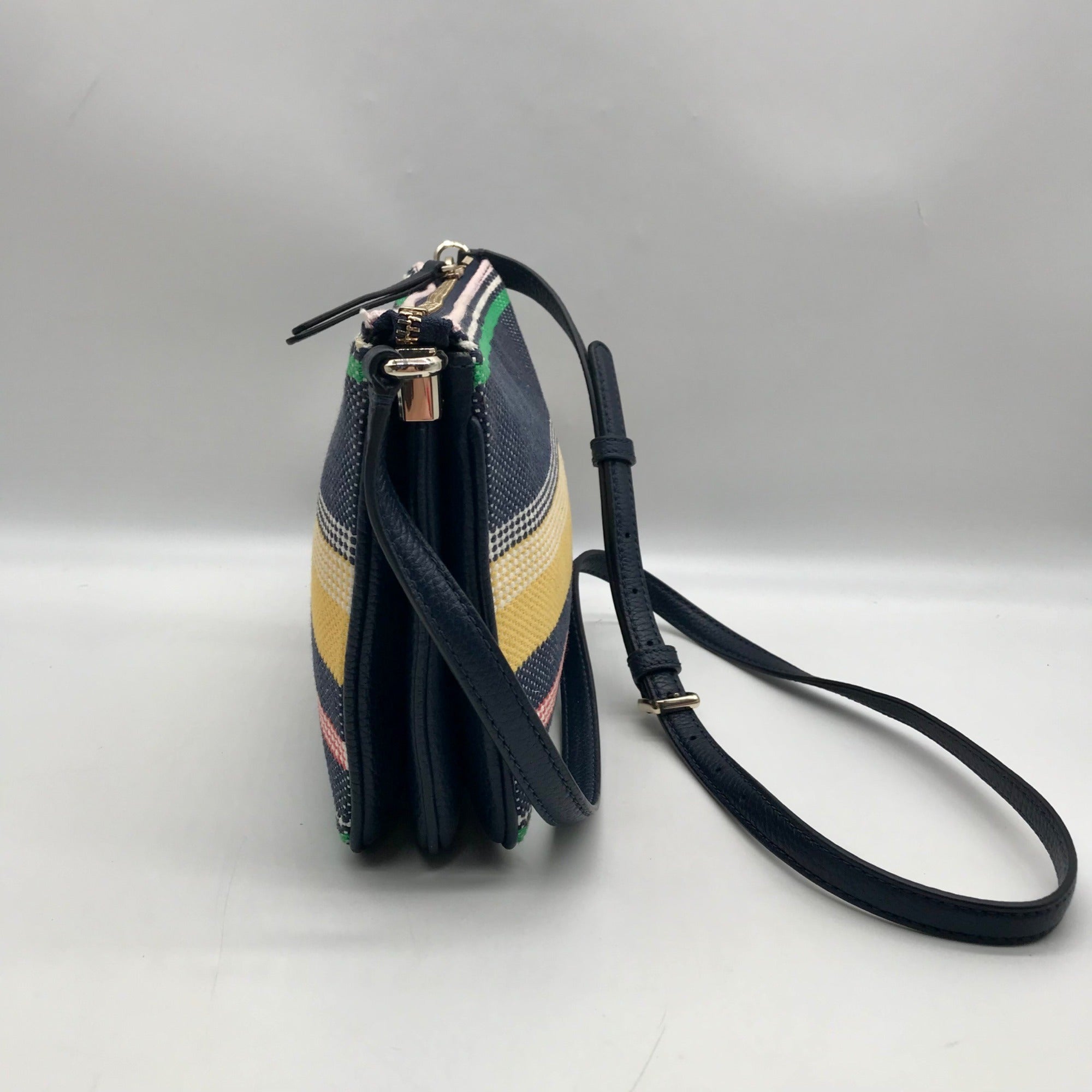 Kate Spade Dark Blue Canvas Jackson Boardwalk Stripe Triple Gusset Crossbody