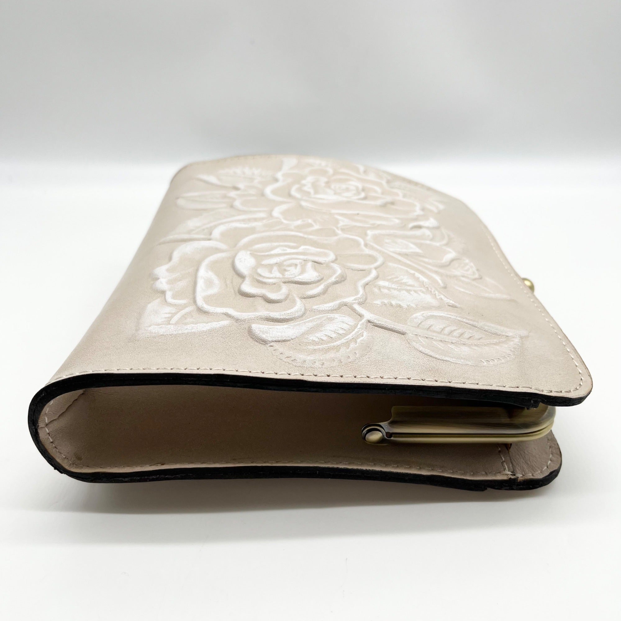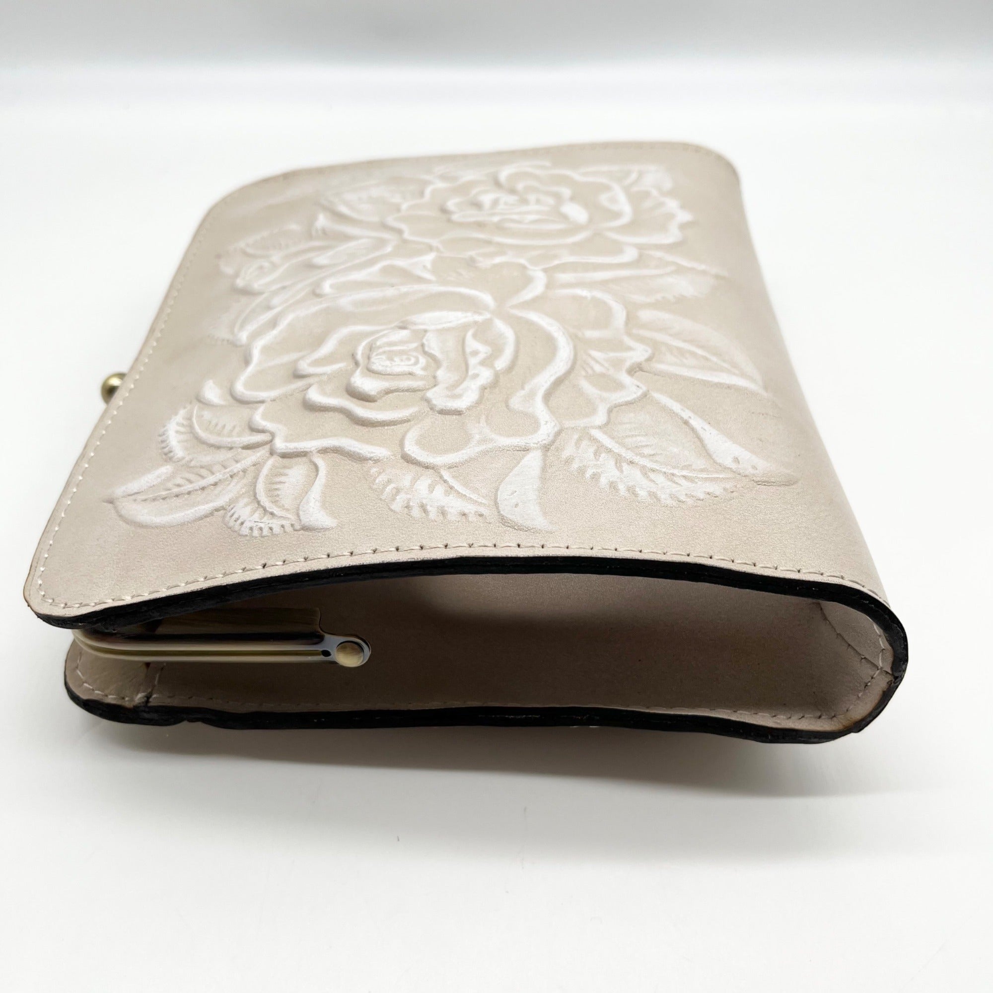 Patricia Nash Beige Leather Evangeline Floral Embossed Crossbody Bag