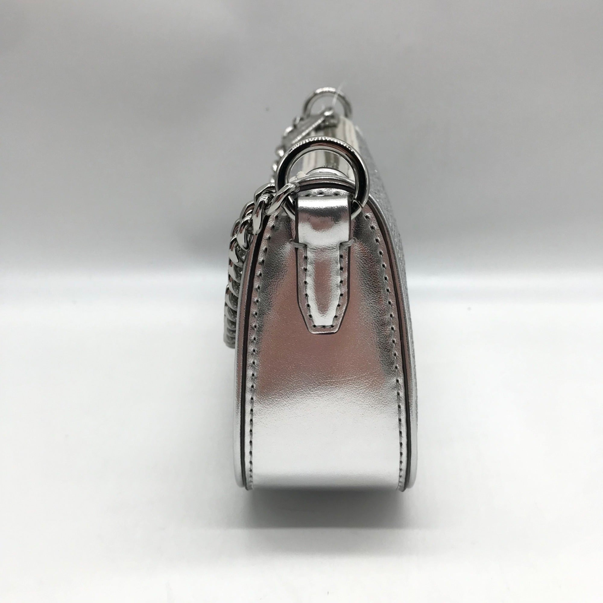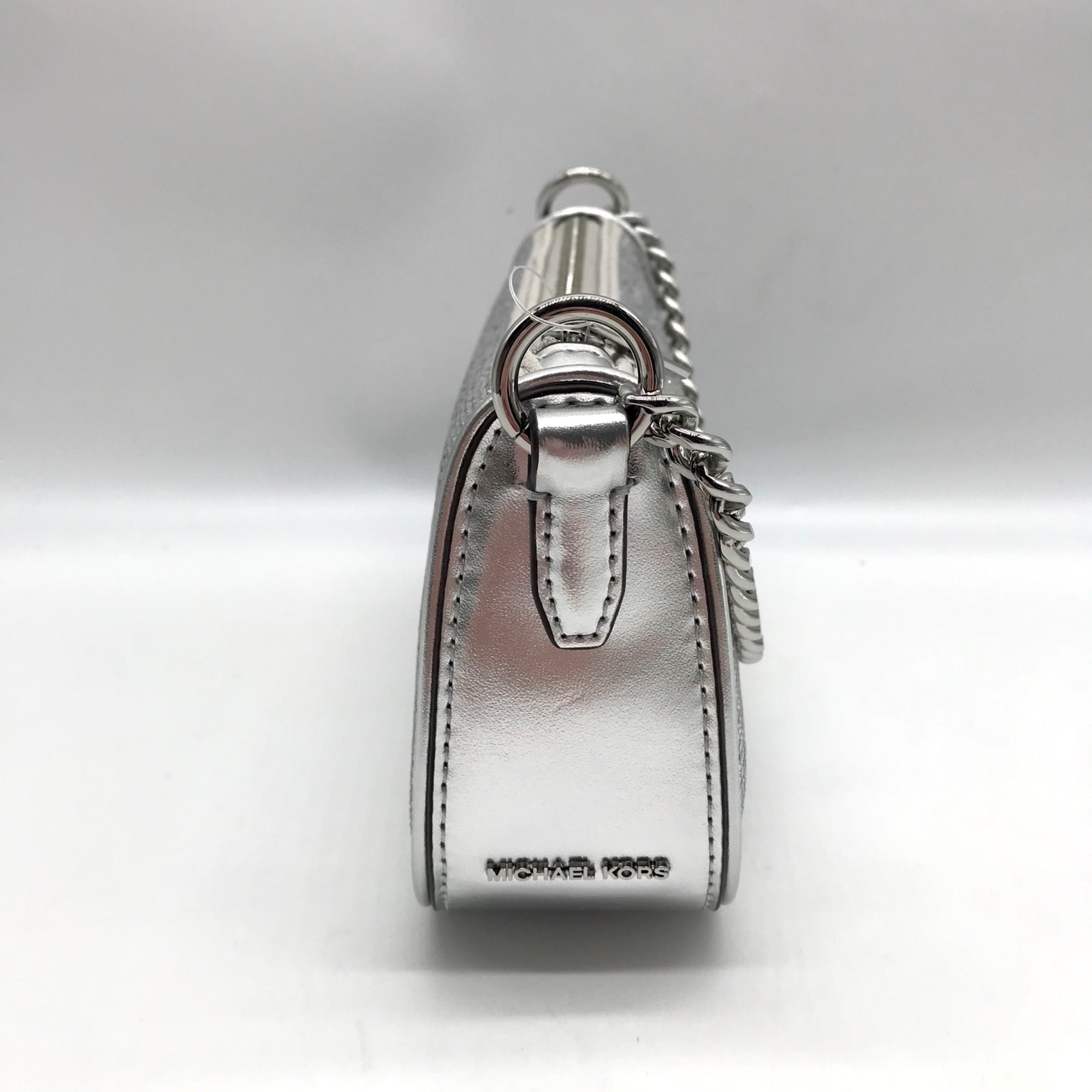 Michael Kors Silver Leather Carmela Small Pouchette Crossbody Bag