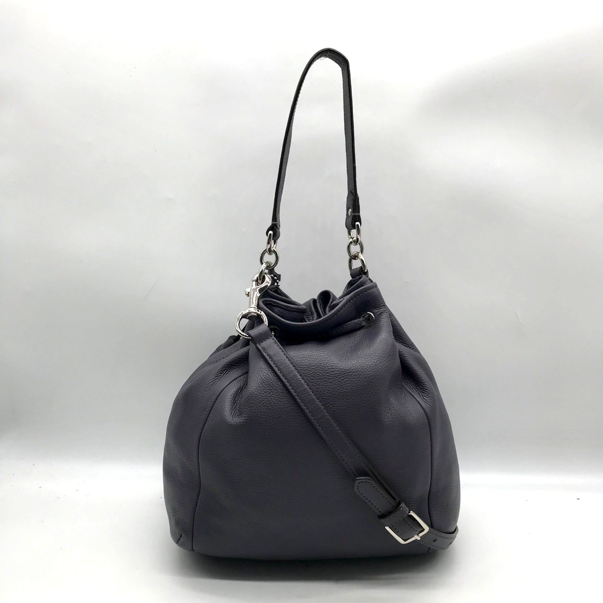 Coach Stone Gray Pebbled Leather Avery Drawstring Bucket Bag F27003