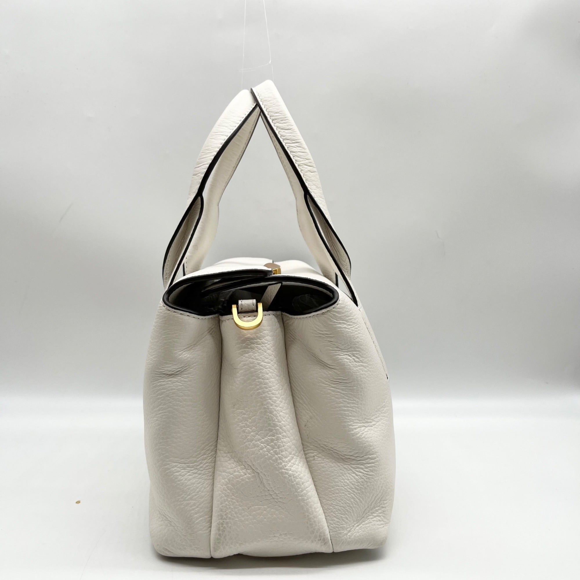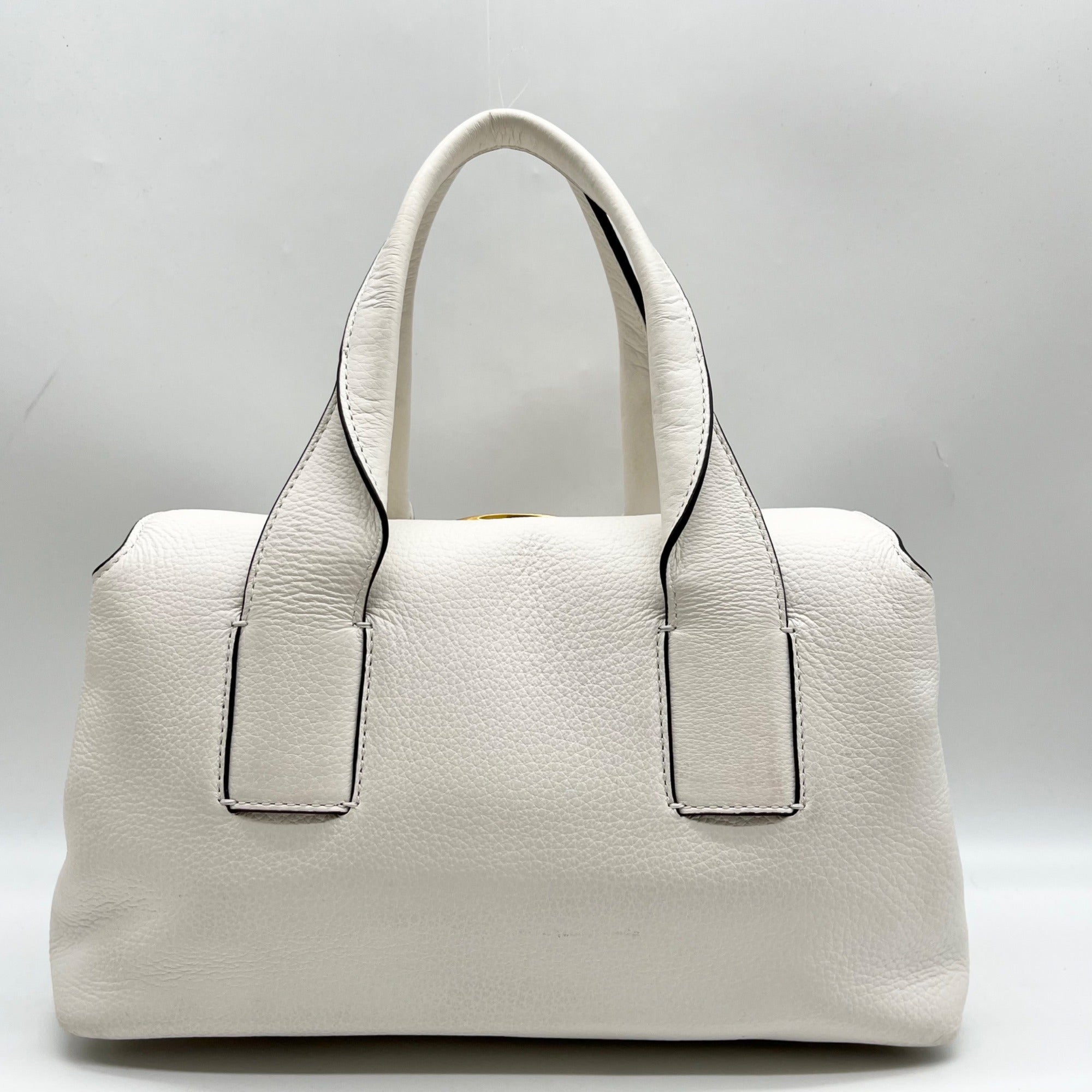 Donna Karan Brilliant White Pebbled Leather Amagansett Convertible Satchel Bag