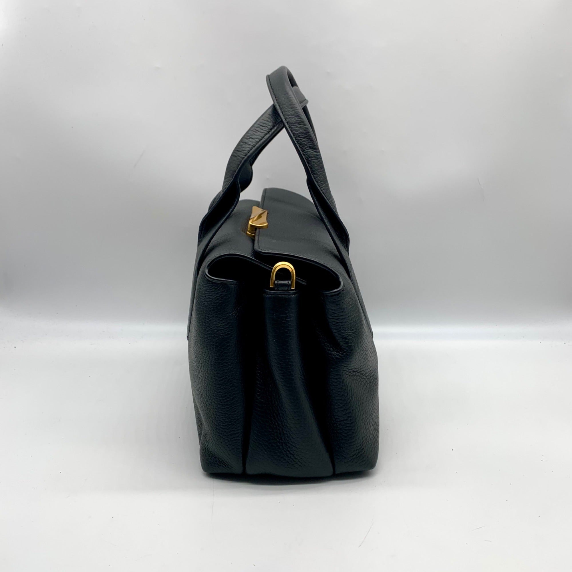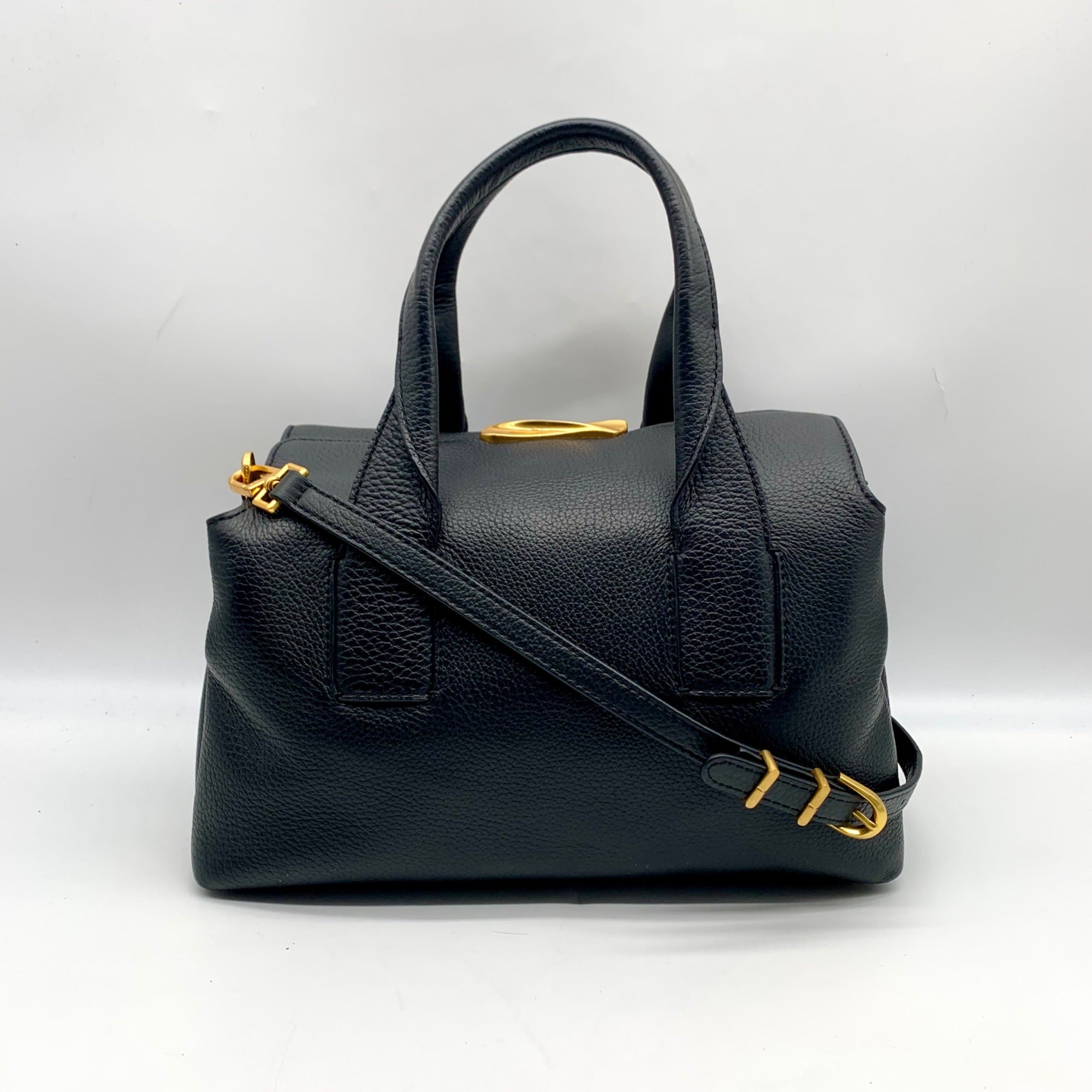 Donna Karan Black Pebbled Leather Amagansett Convertible Satchel Bag