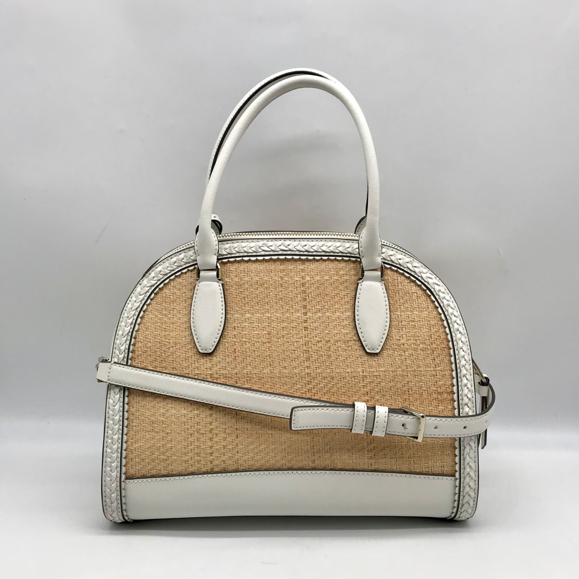 Kate Spade White Leather And Straw Reiley Dome Satchel