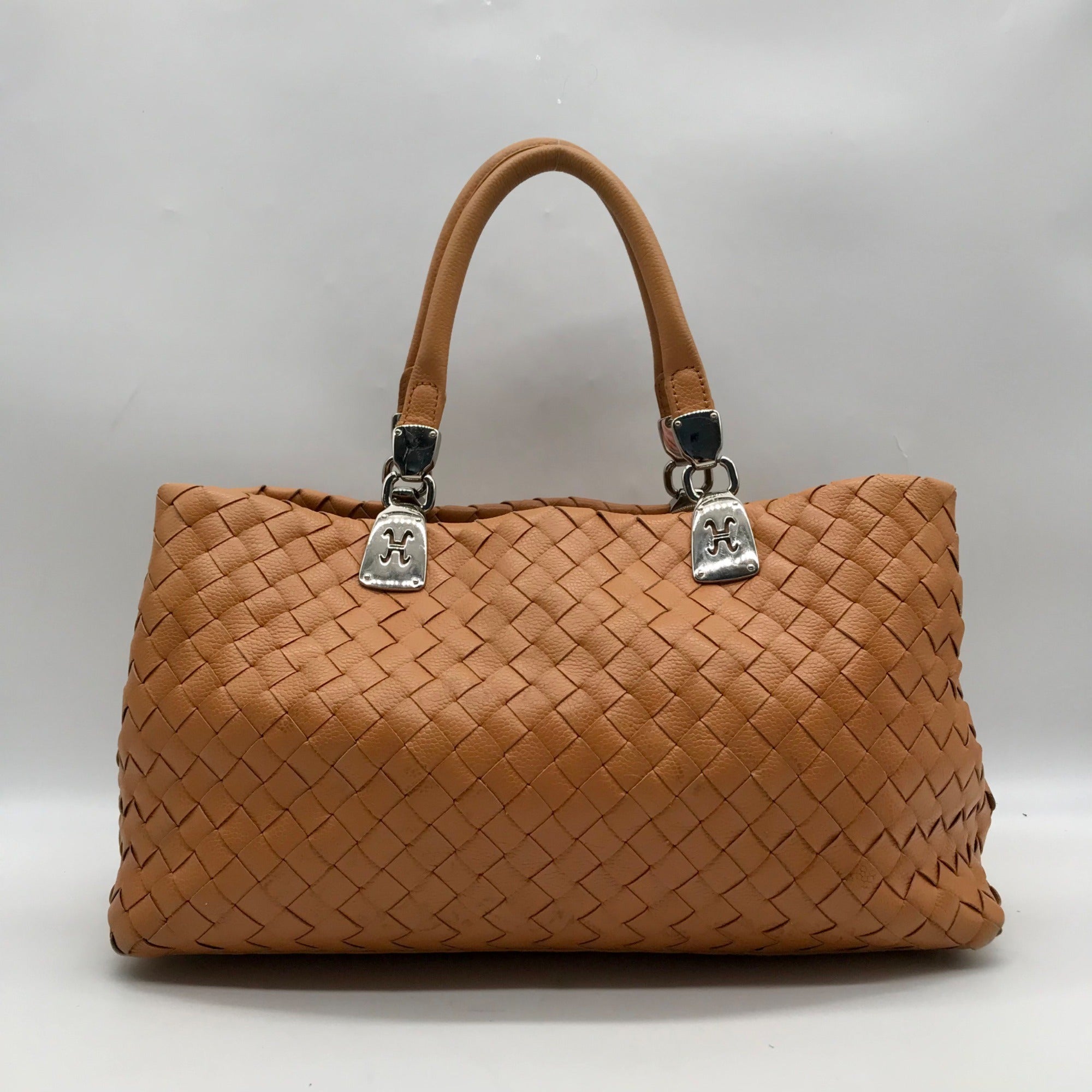 Zan Studio Beige Croc Embossed Leather Convertible Satchel Bag