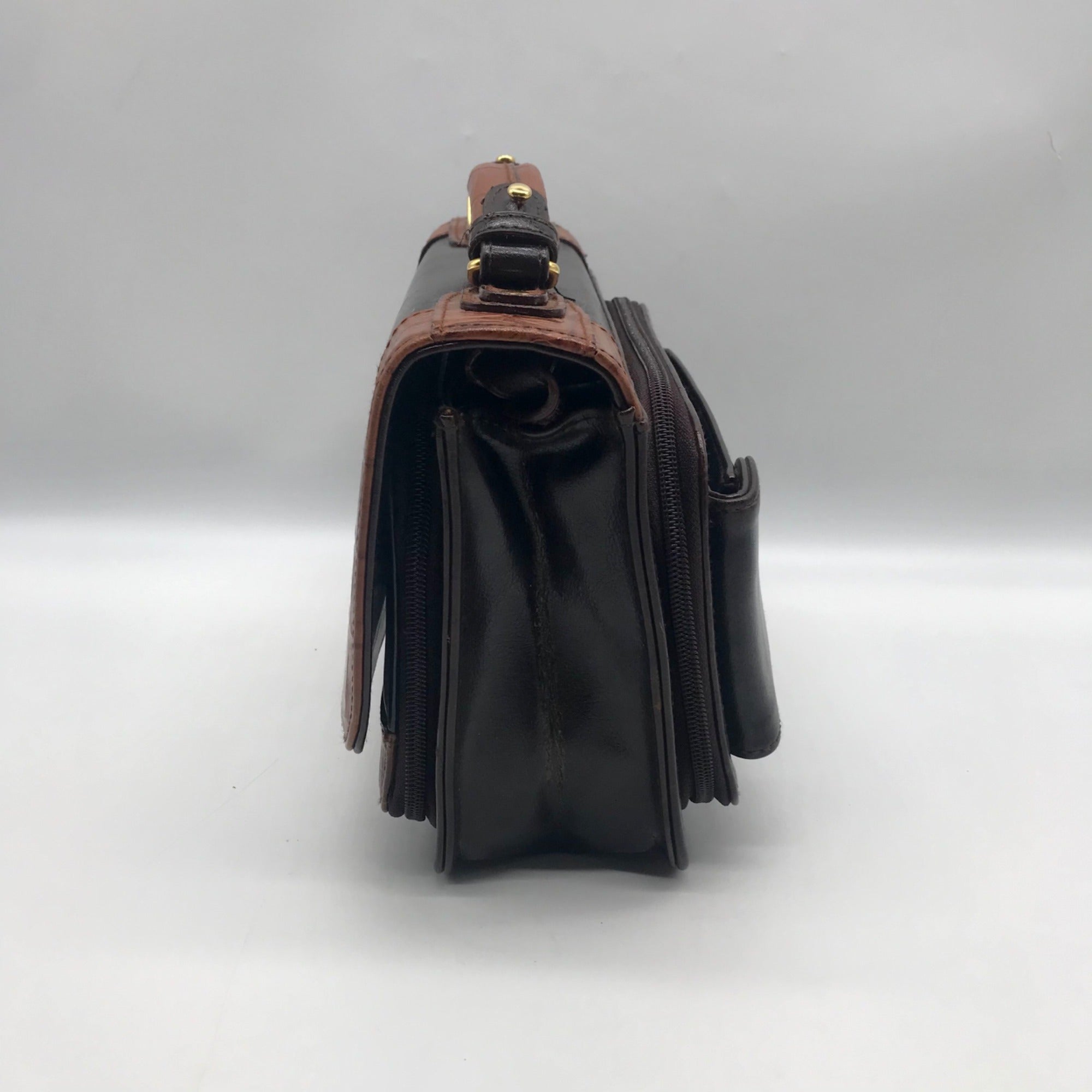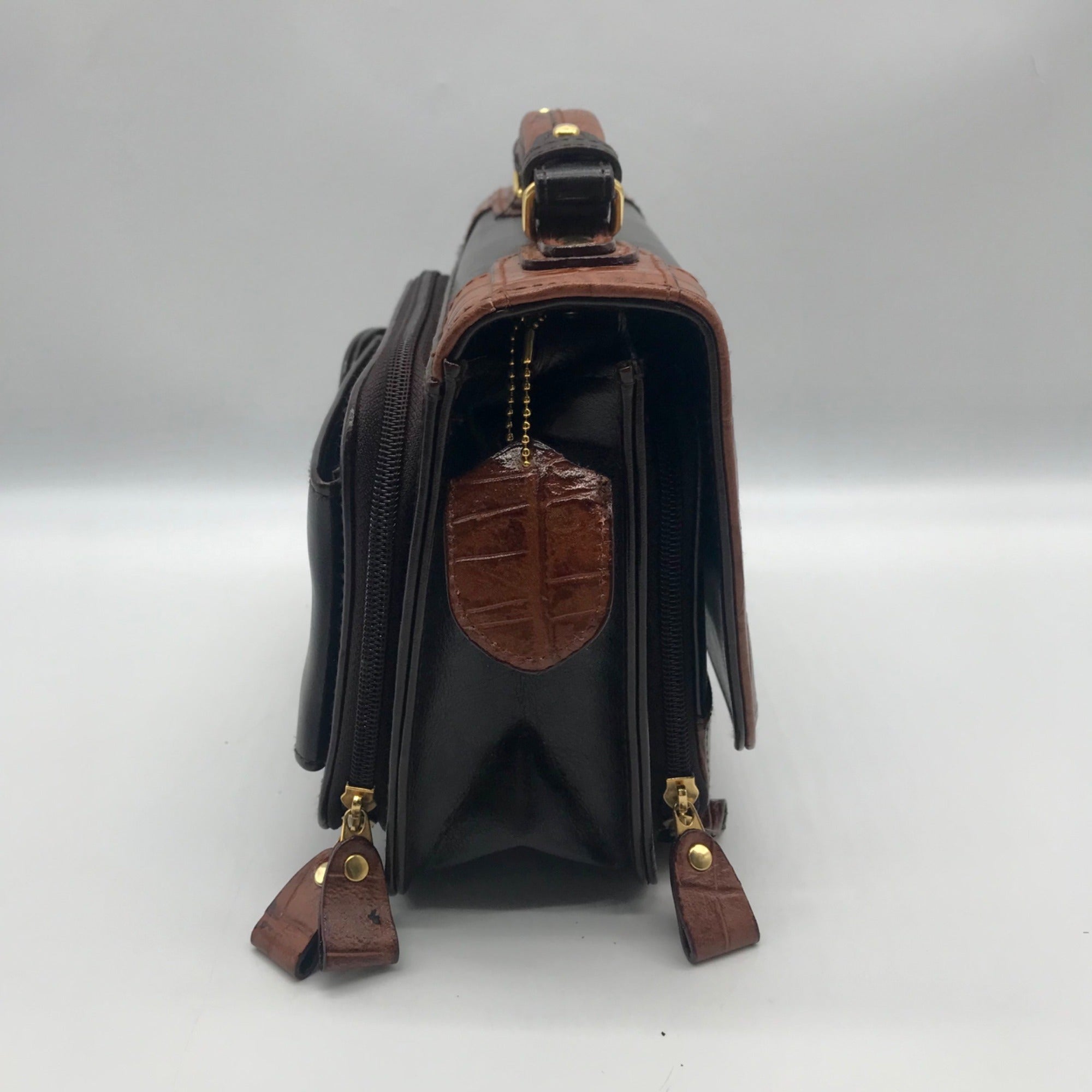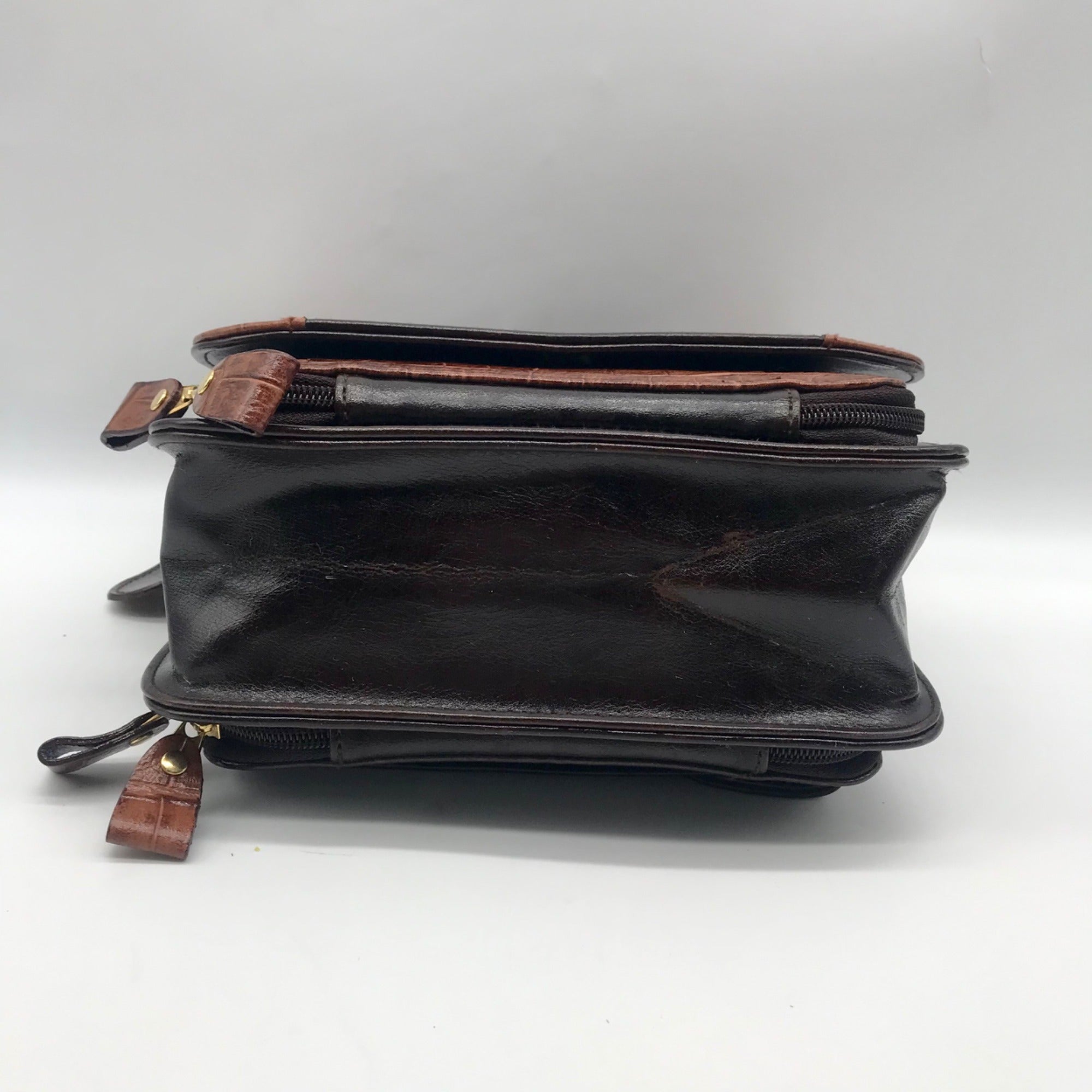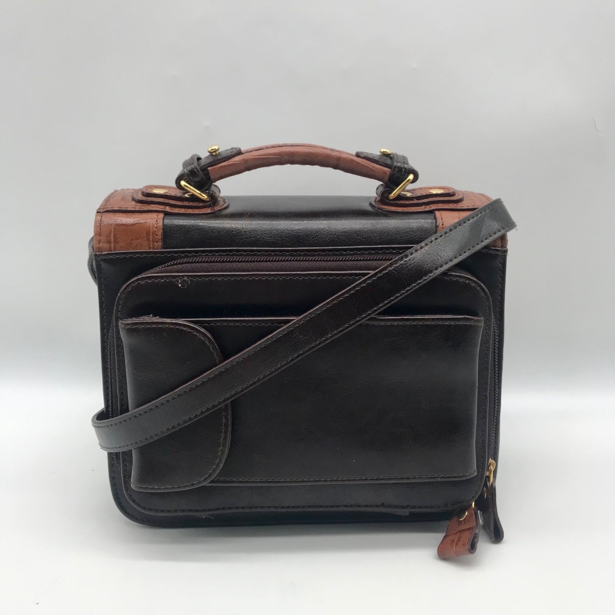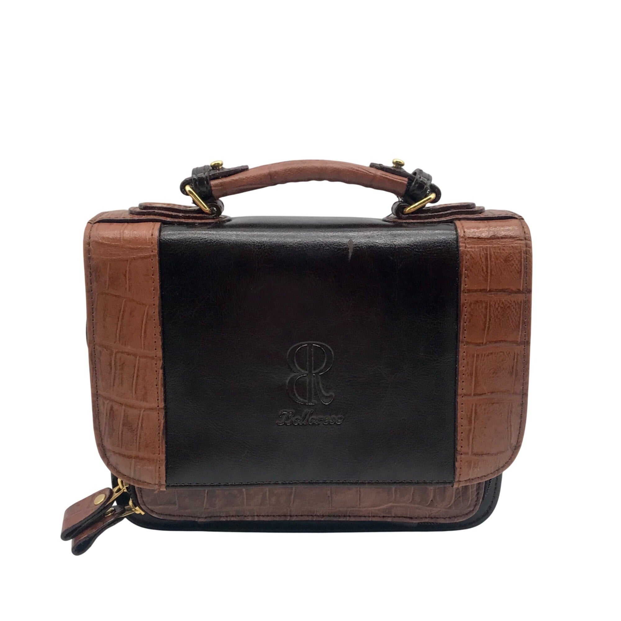 Bellerose Brown Faux Leather Multi Compartment Convertible Satchel
