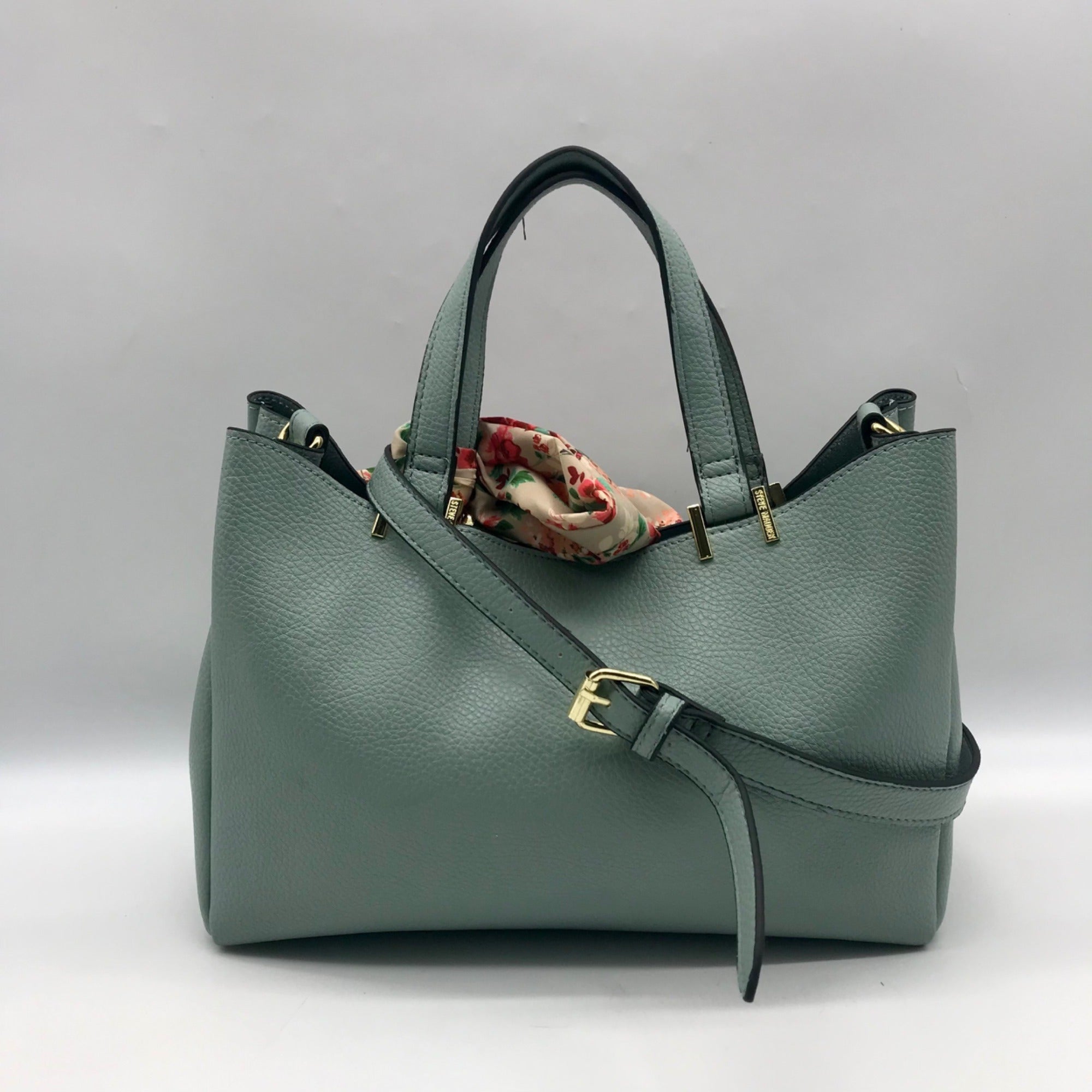 Steve Madden Mint Green Pebbled Satchel With Scarf