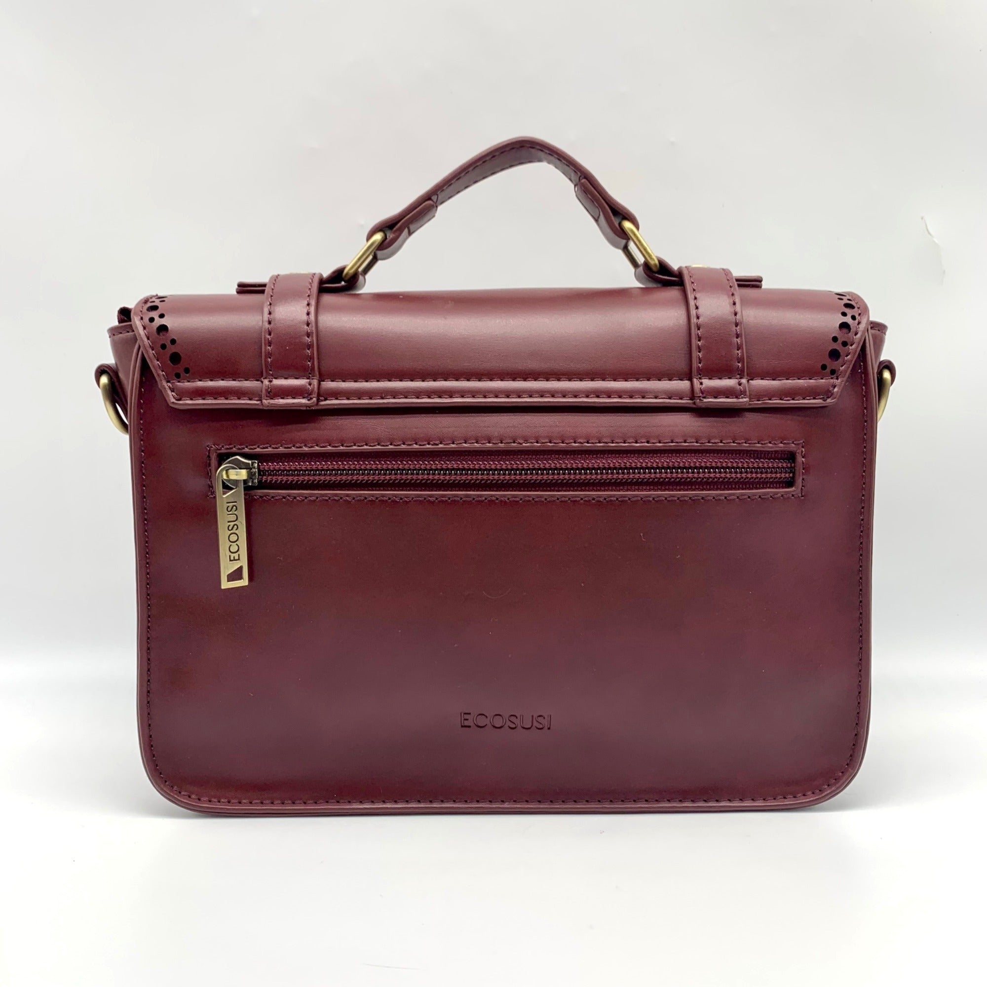 Ecosusi Burgundy Vegan Leather Top Handle Briefcase Satchel