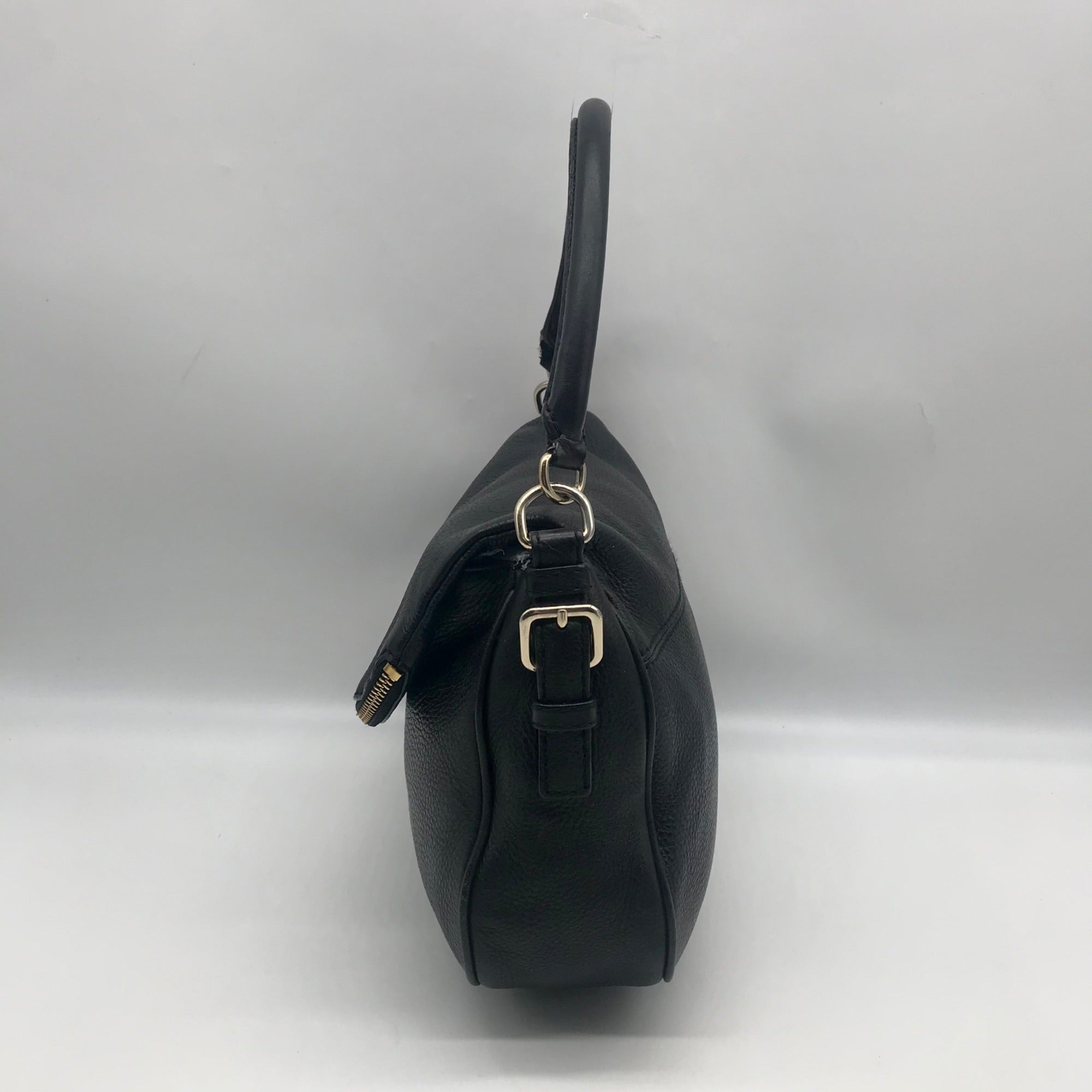 Elliott Lucca Black Leather Gold Accents Satchel Bag