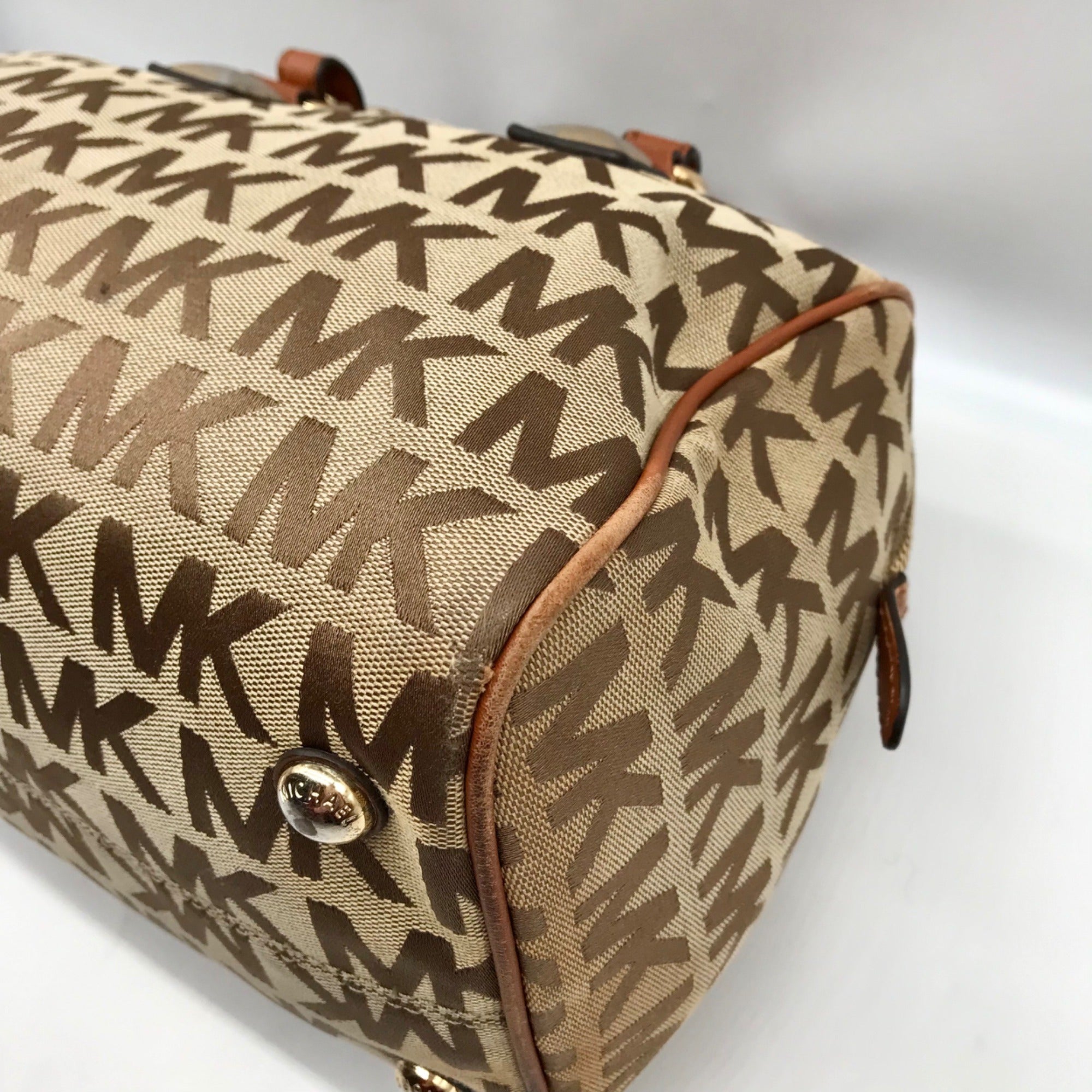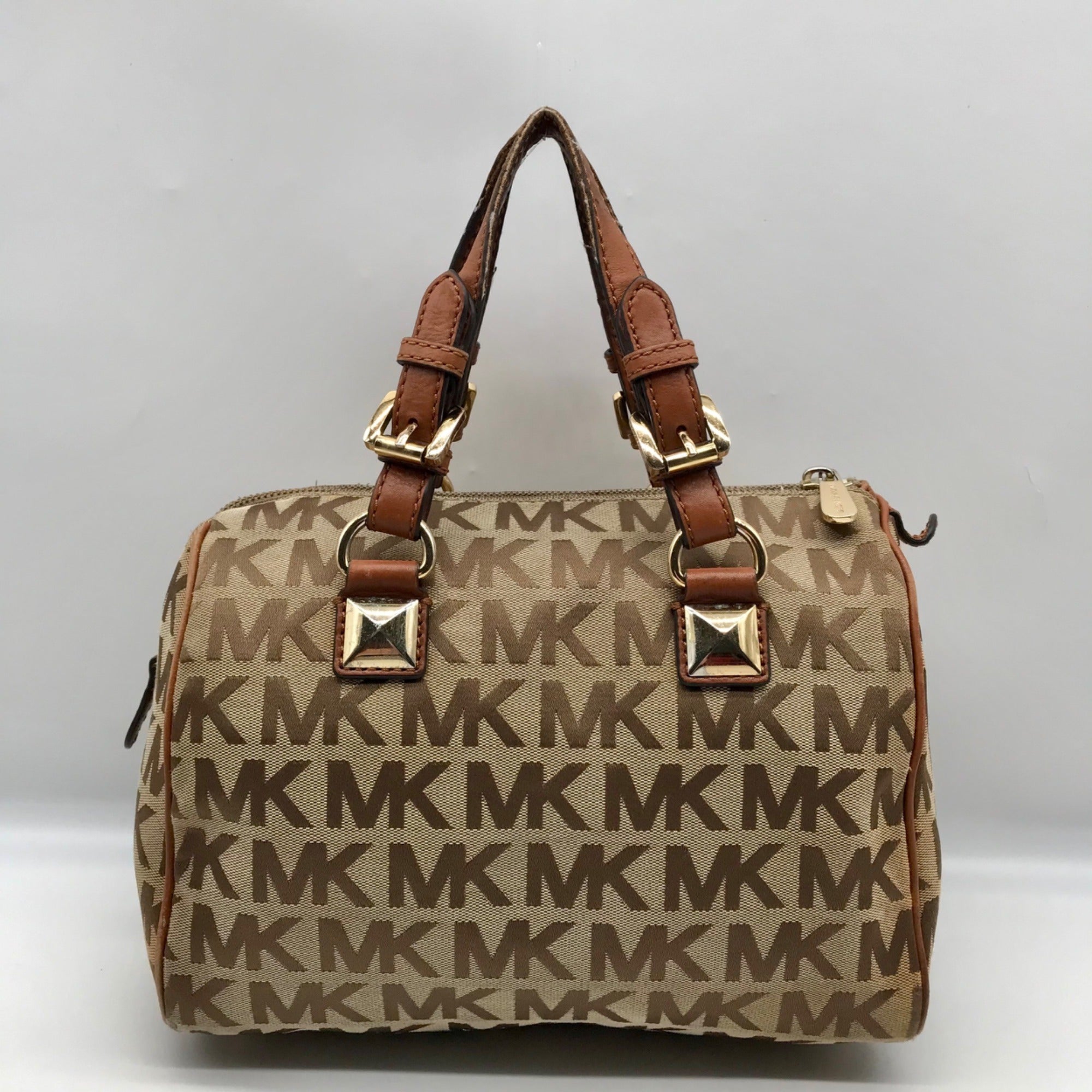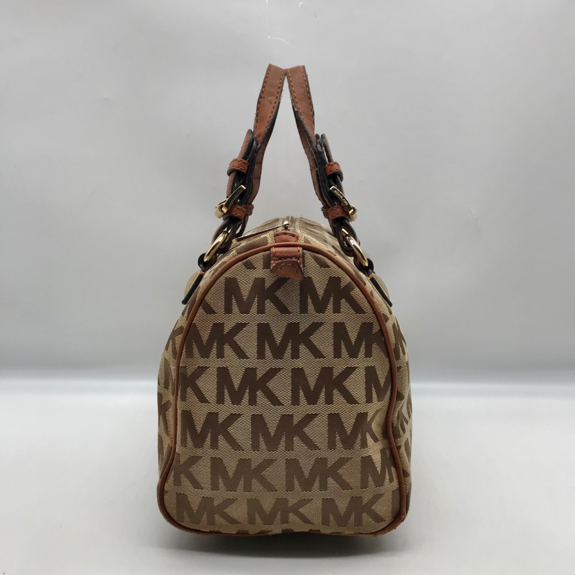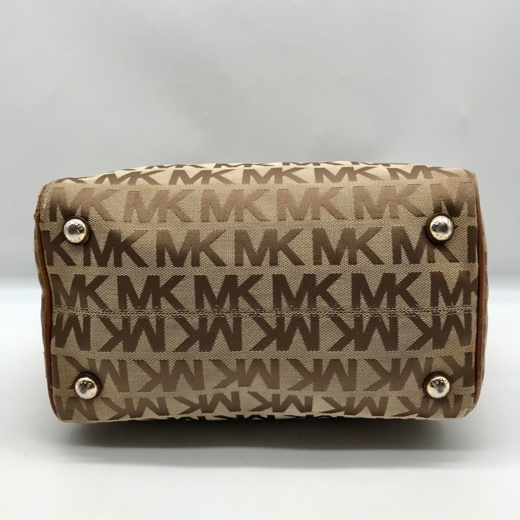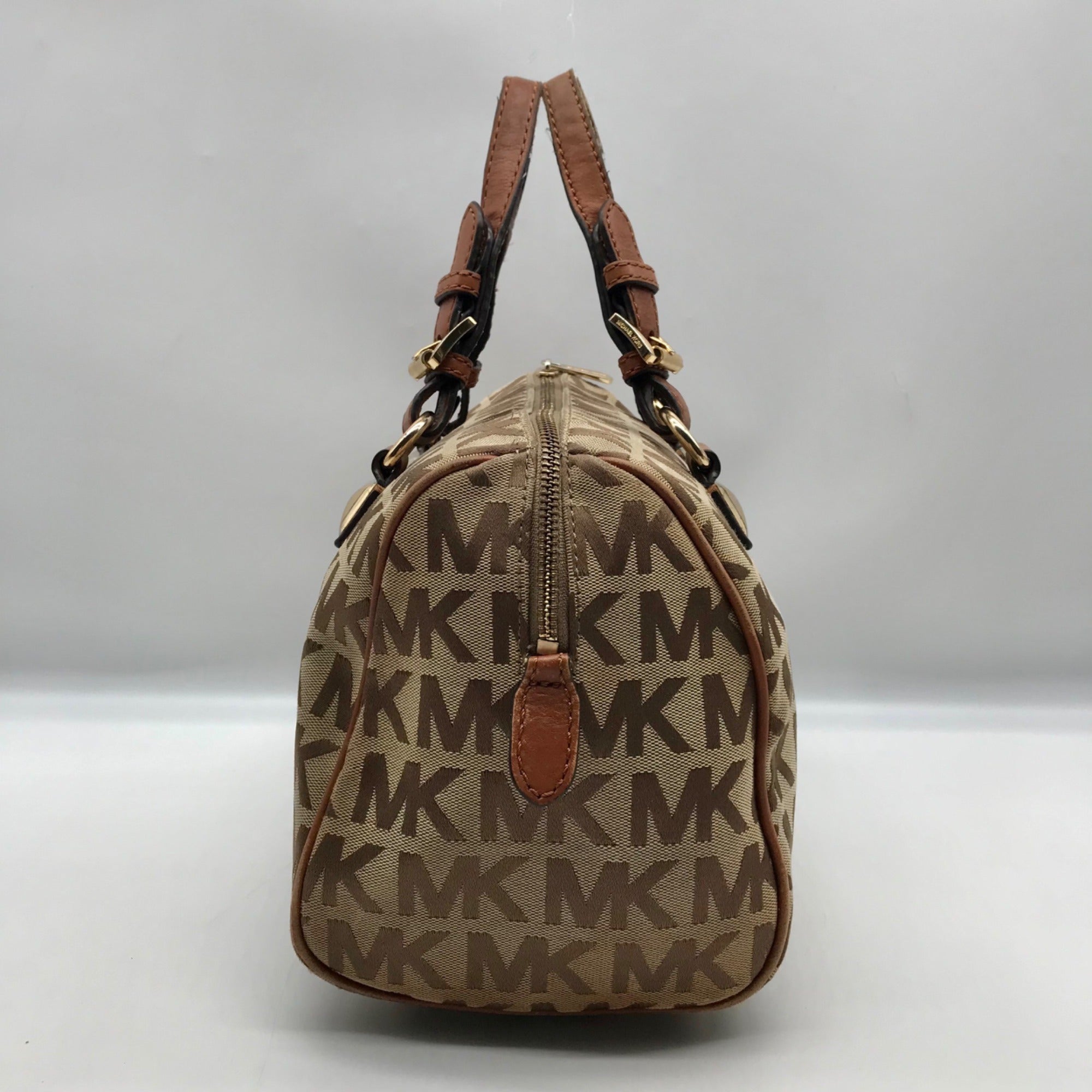 Michael Kors Khaki Monogram Canvas Grayson Satchel Bag