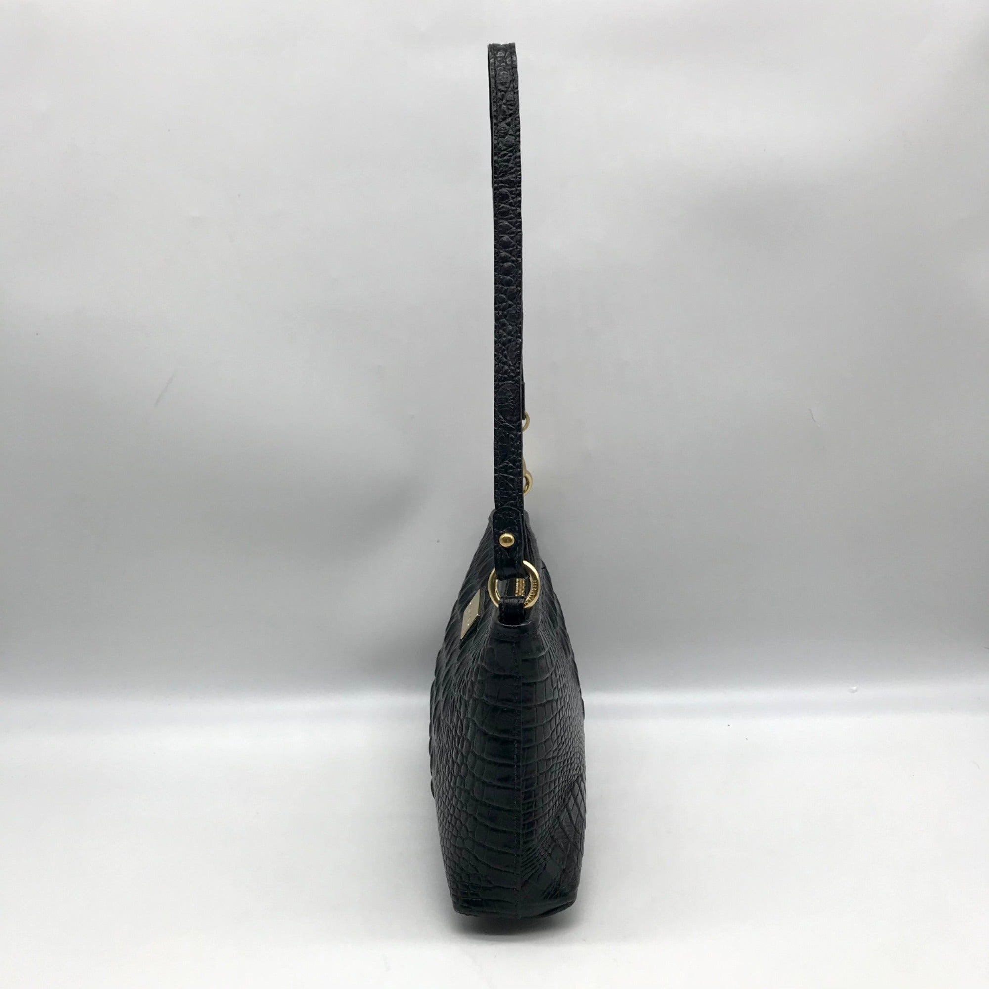 Brahmin Black Croc Embossed Leather Mini Shoulder Bag