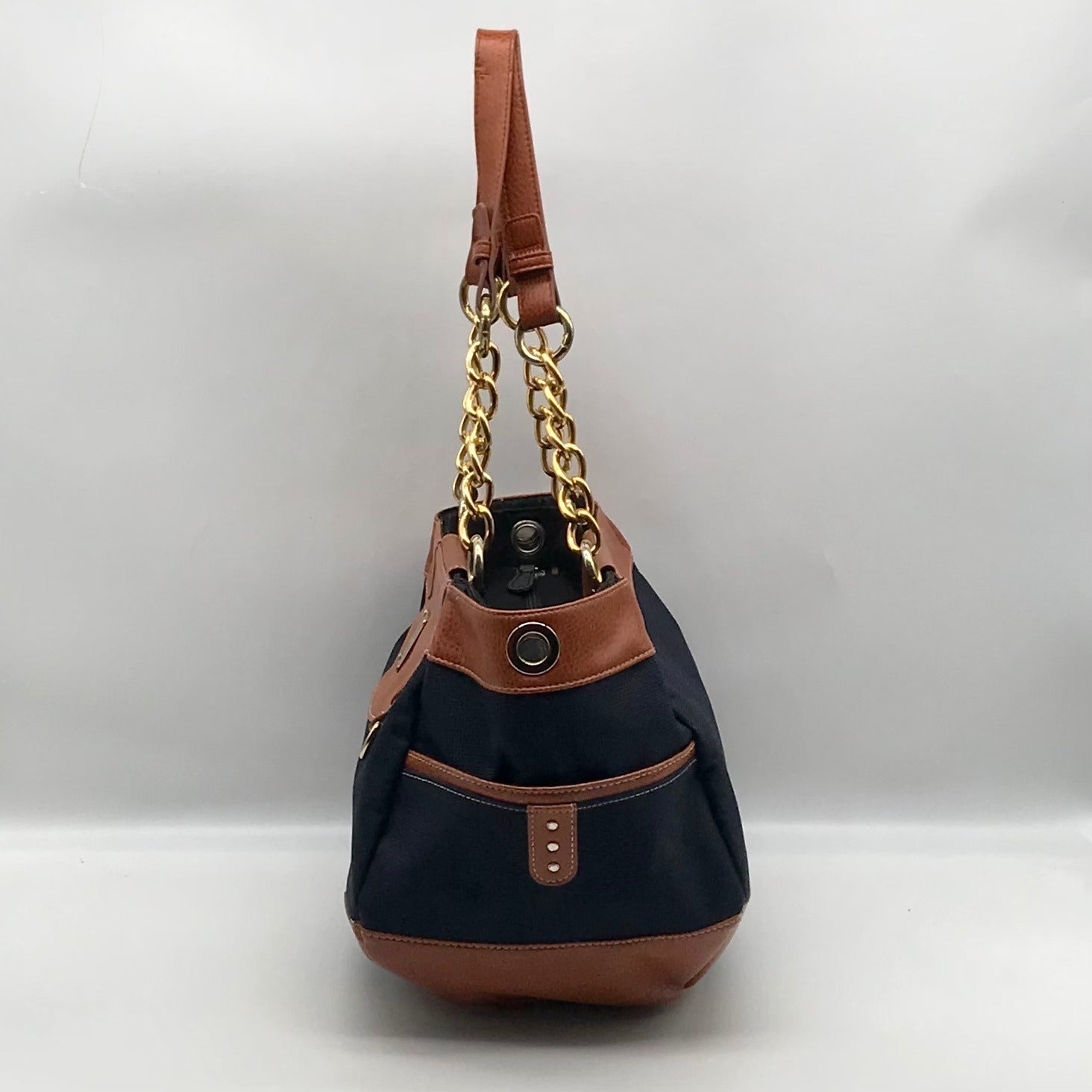 Miche Navy Blue & Brown Canvas Magda Prima Tote Bag