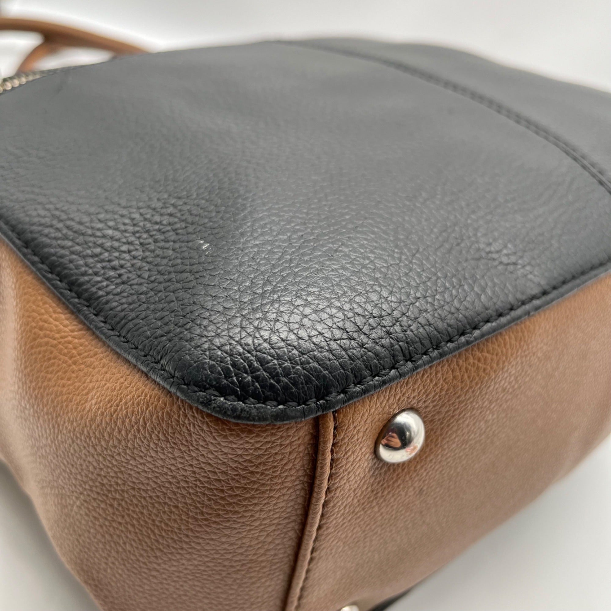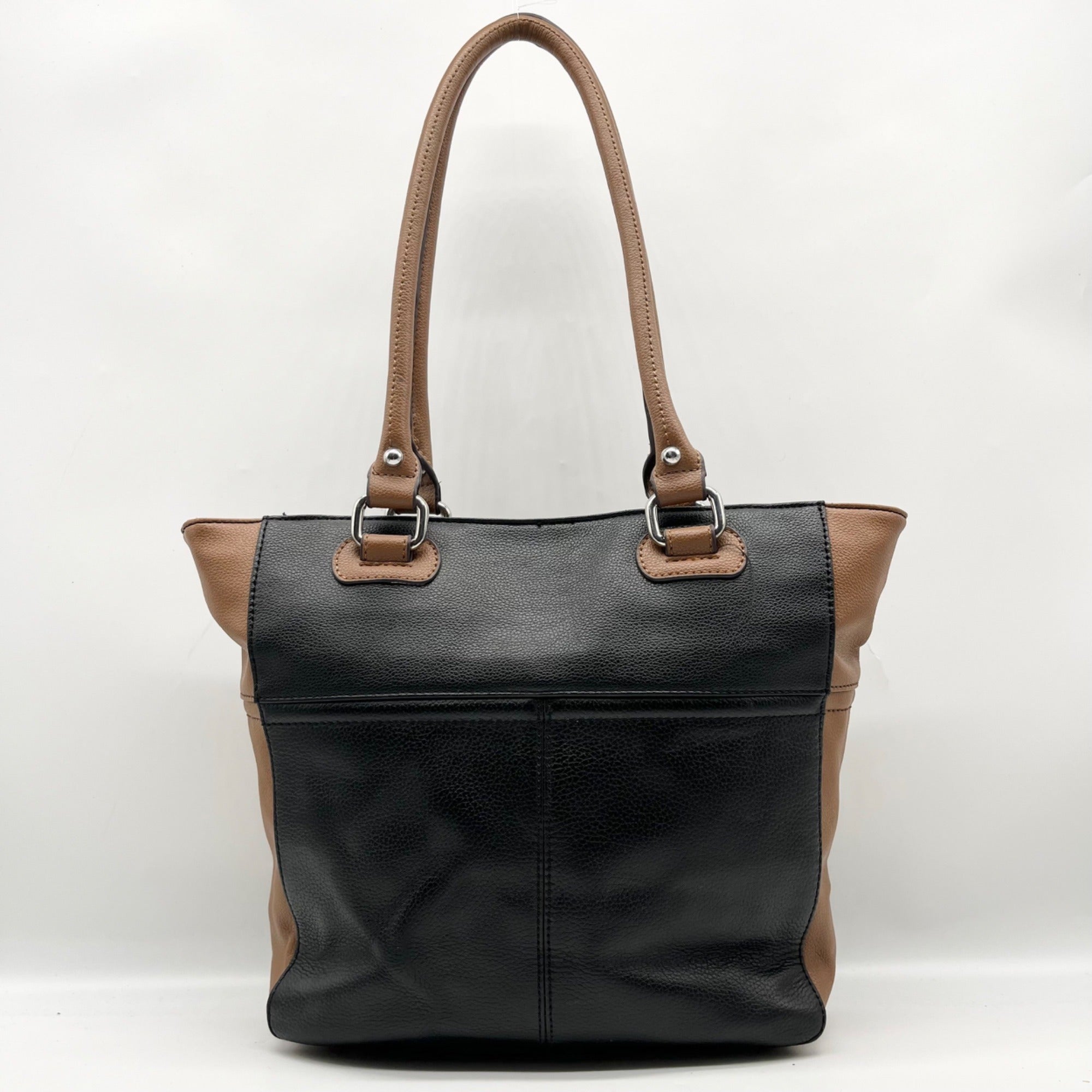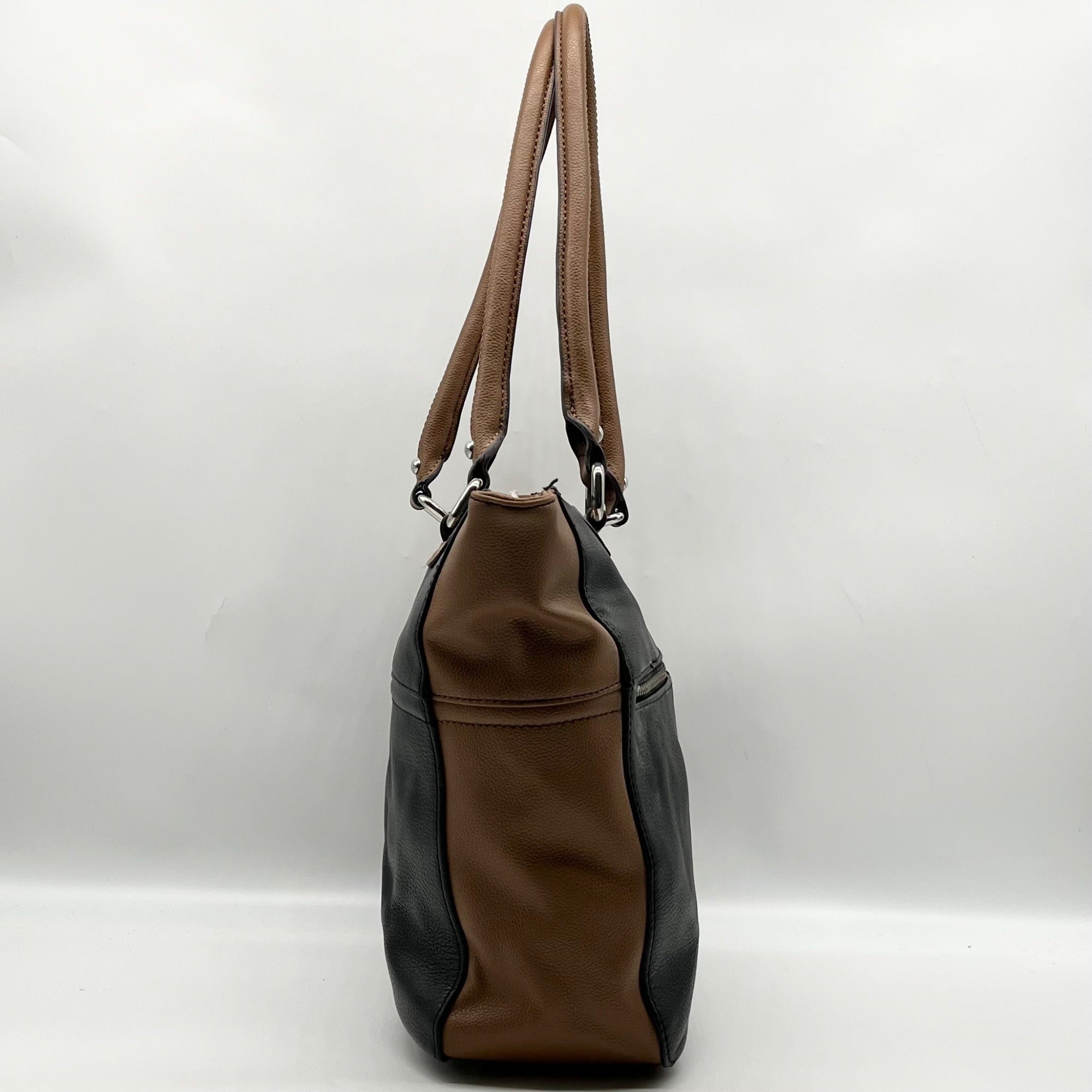 Tignanello Black And Brown Pebbled Leather Tote Bag