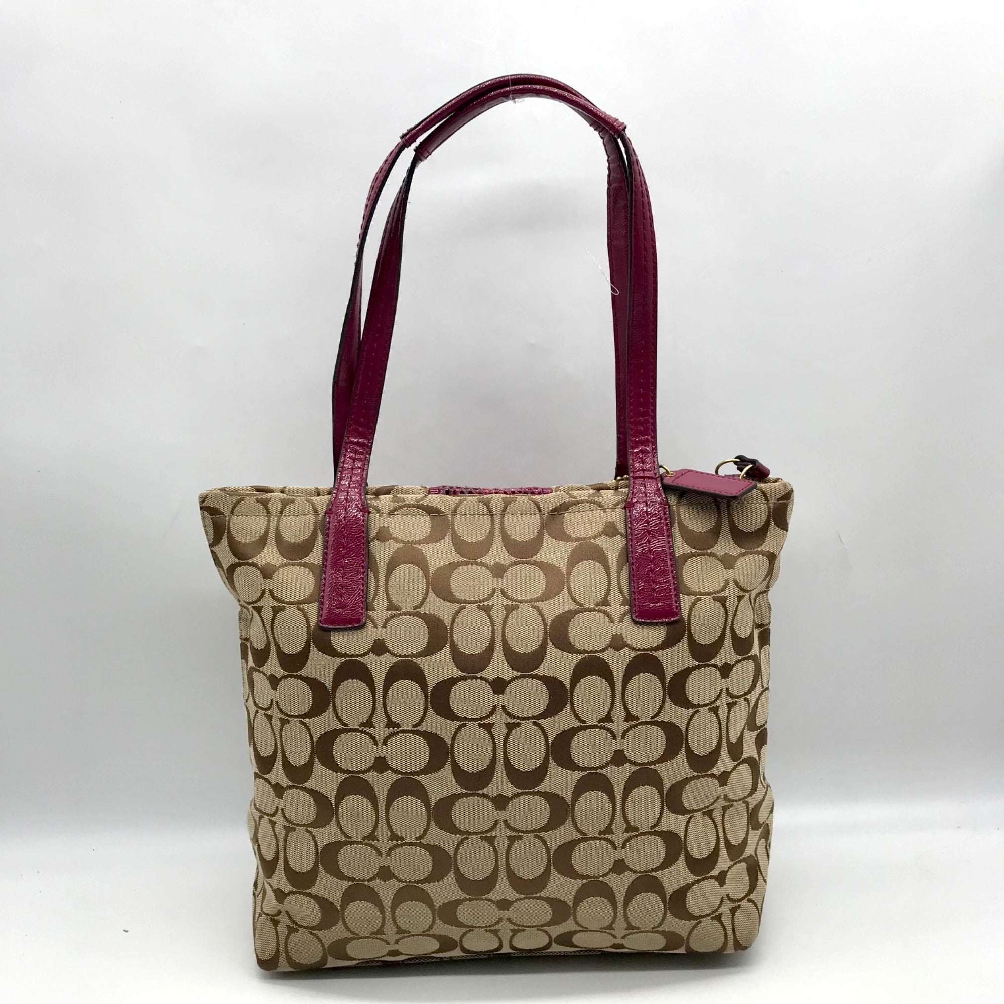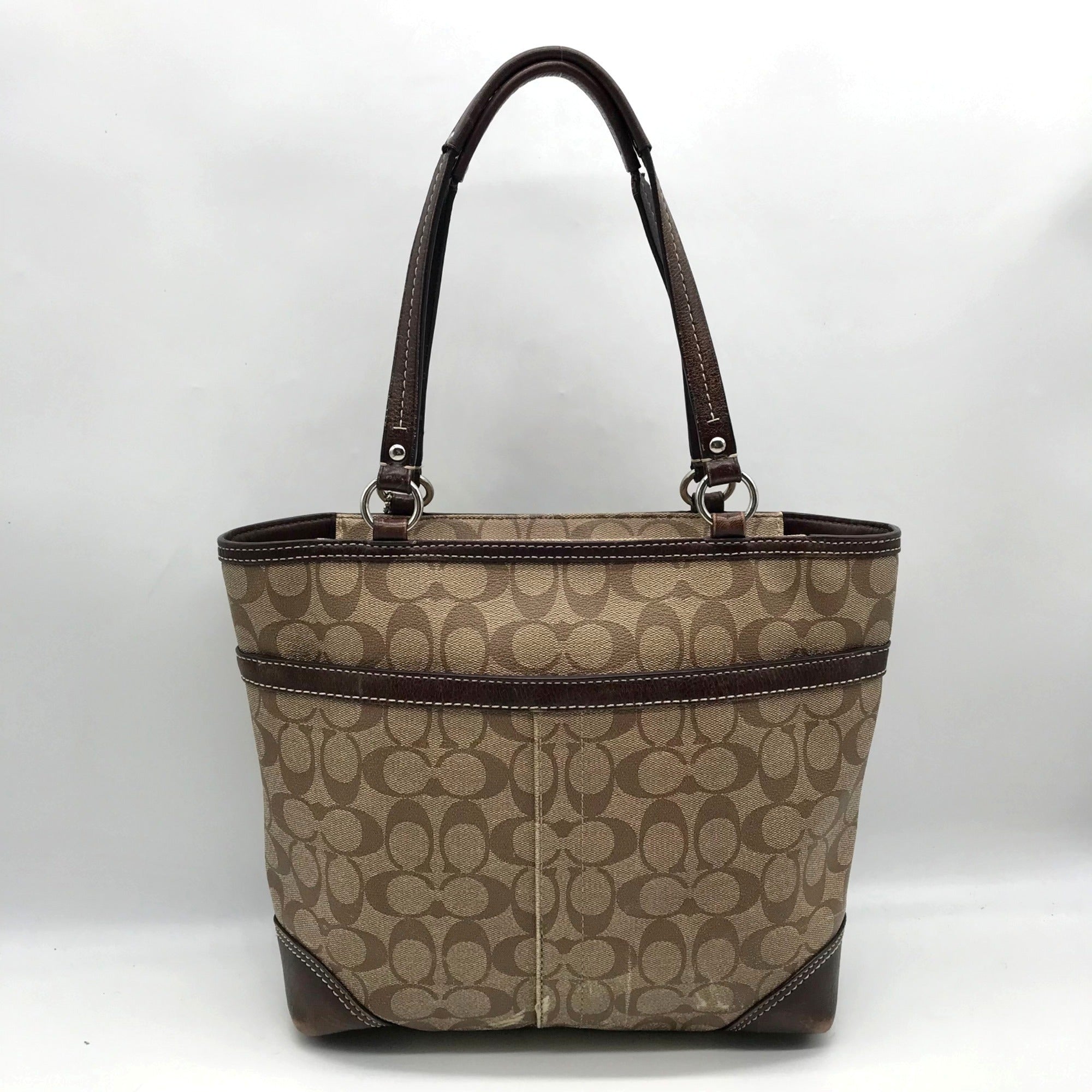 Coach Beige & Brown Canvas Hampton Tote Bag F12645