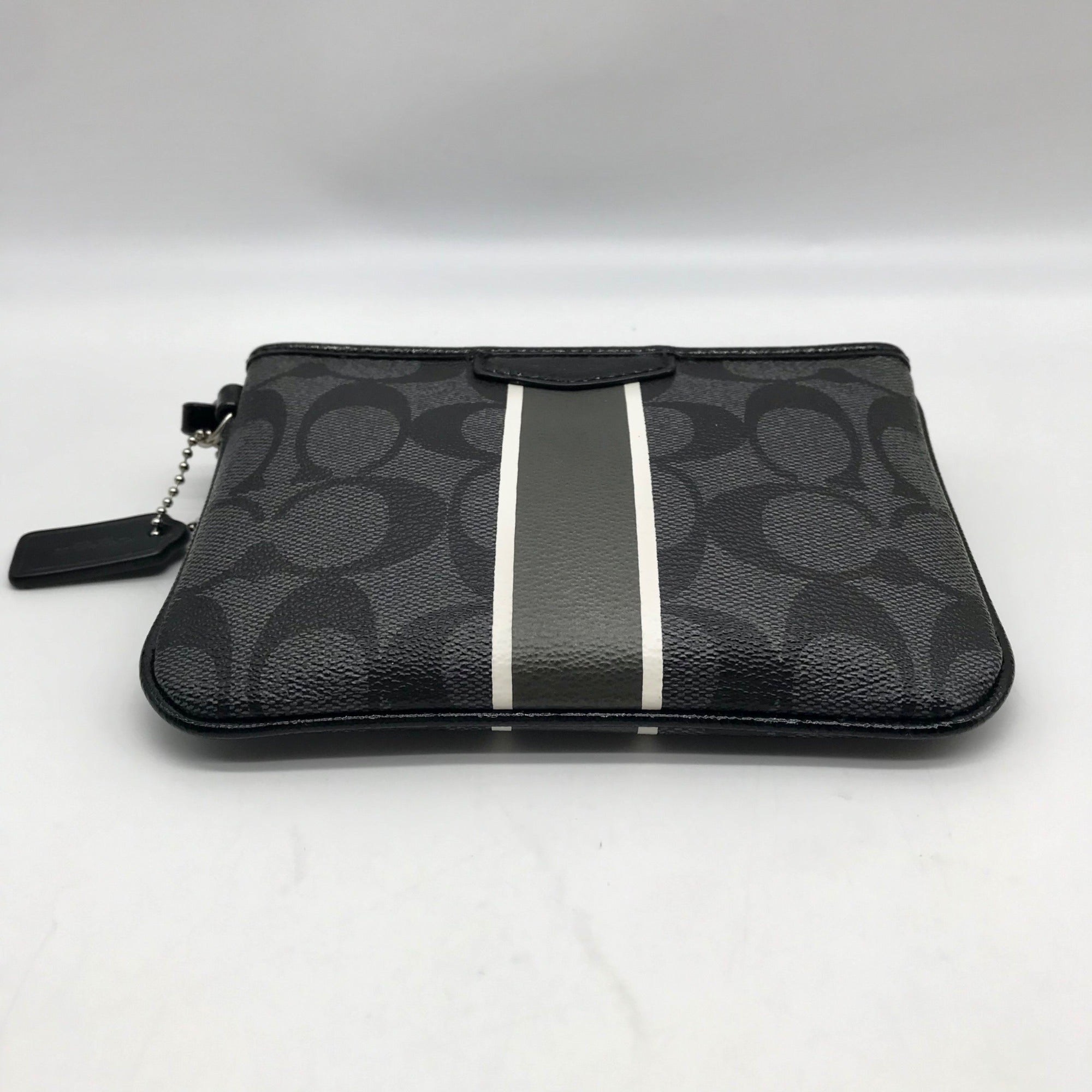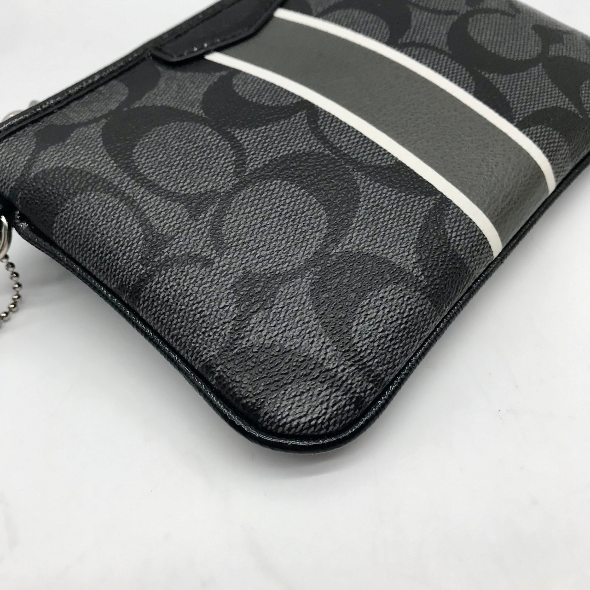 Coach Gray and Black Signature Coated Canvas Striped Corner Zip Wristlet