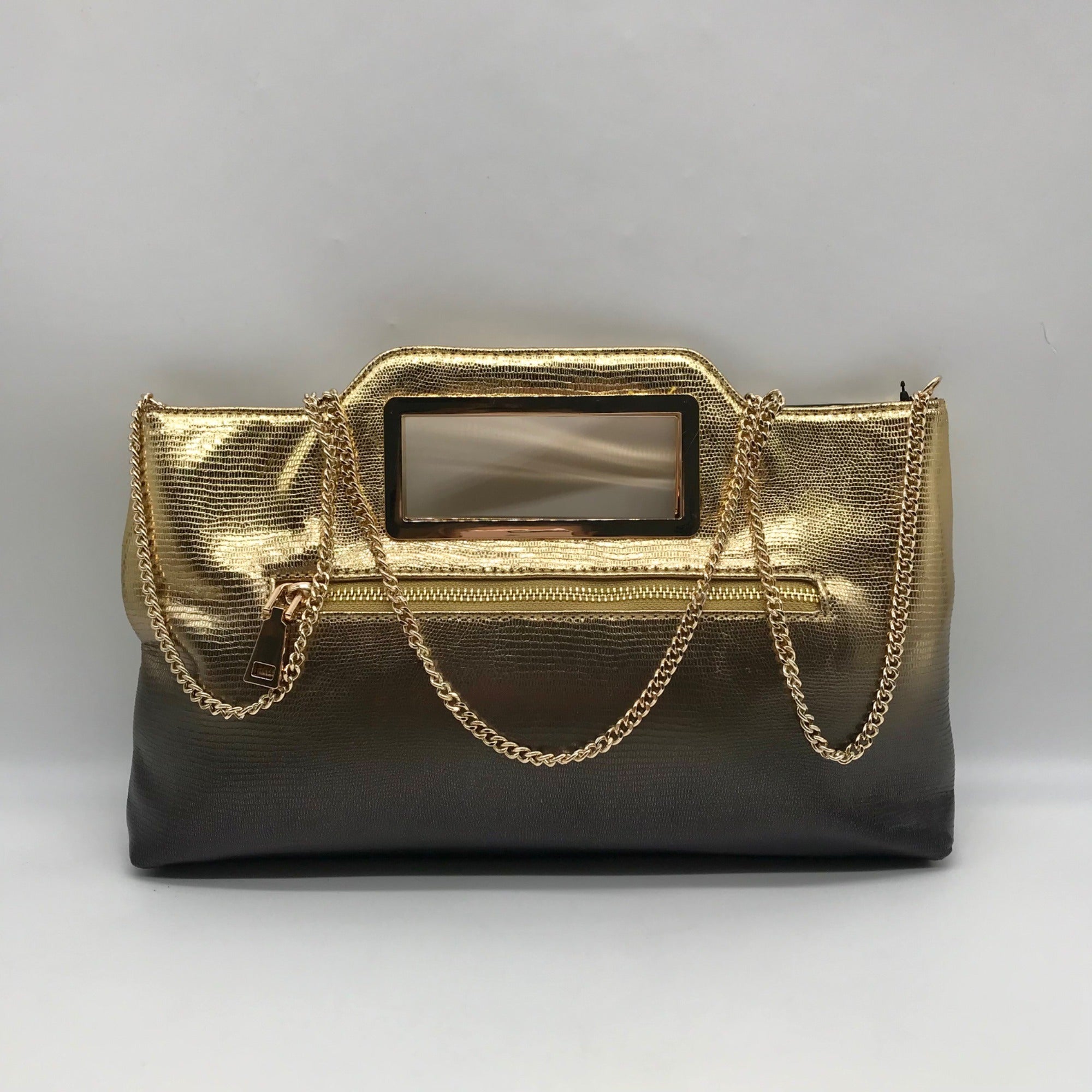 I.N.C. International Concepts Metallic Gold & black Judith Convertible Clutch