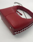 • Exterior: silver chain trim around the top to the sides, silver protective bottom feet, 2 silver rings for the chain strap