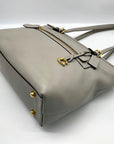The Coach Dove Gray Polished Pebbled Leather Taylor Tote CC395 exudes understated elegance with its soft gray hue, polished leather finish, and spacious design perfect for work or weekends. (5141-M0010-12.24)