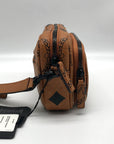 MCM Visetos Cognac Leather Aren Maxi Crossbody Wristlet - NWT