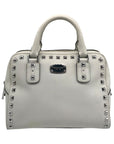 Turn heads with the Michael Kors White Saffiano Leather Studded Satchel, featuring a structured design and gleaming stud accents for a bold, sophisticated look. (5179-M0048-1.25)